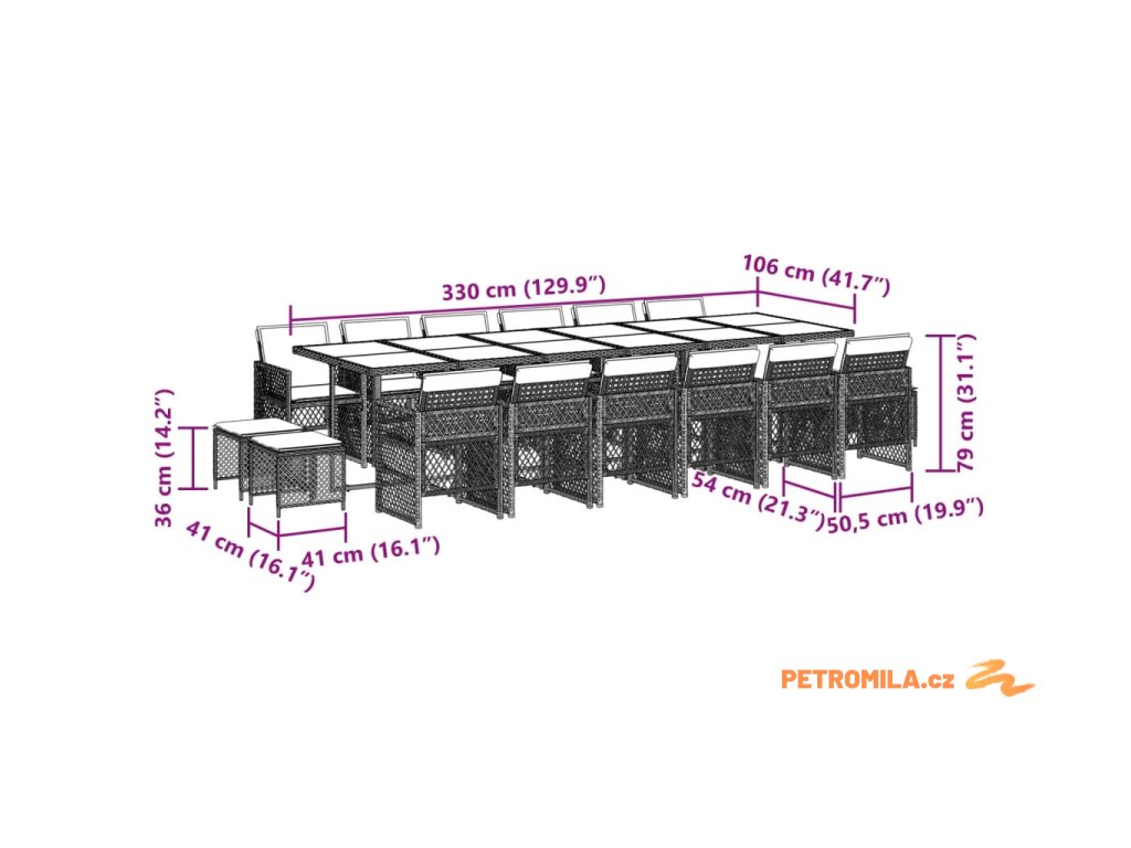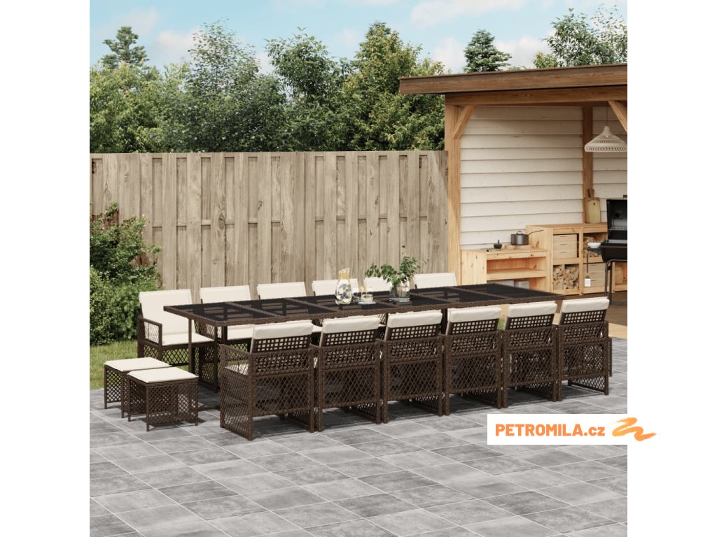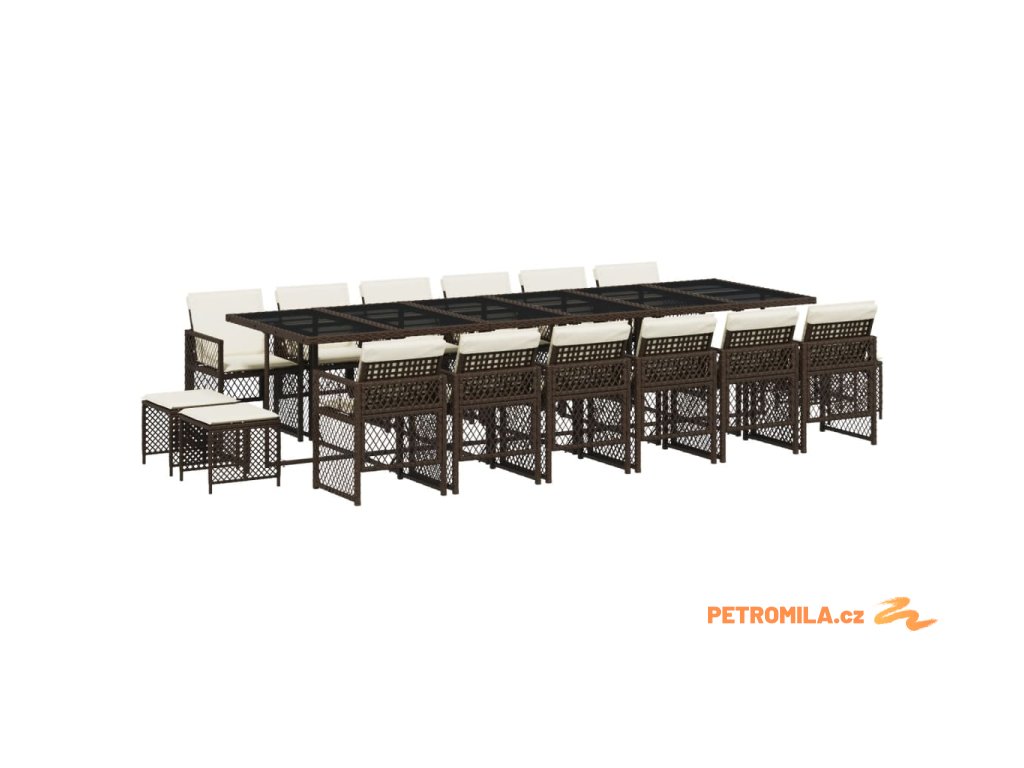 17dílný zahradní jídelní set s poduškami hnědý polyratan