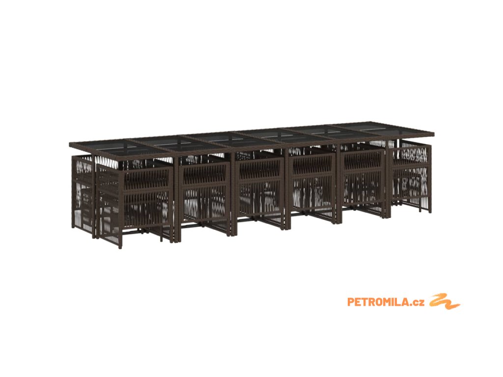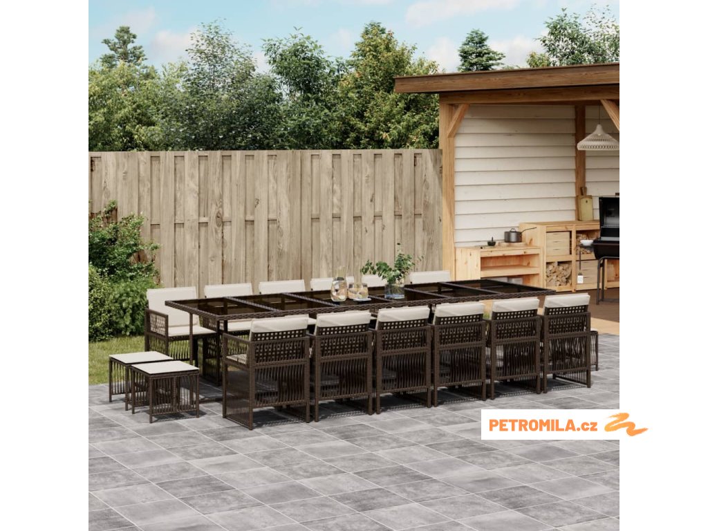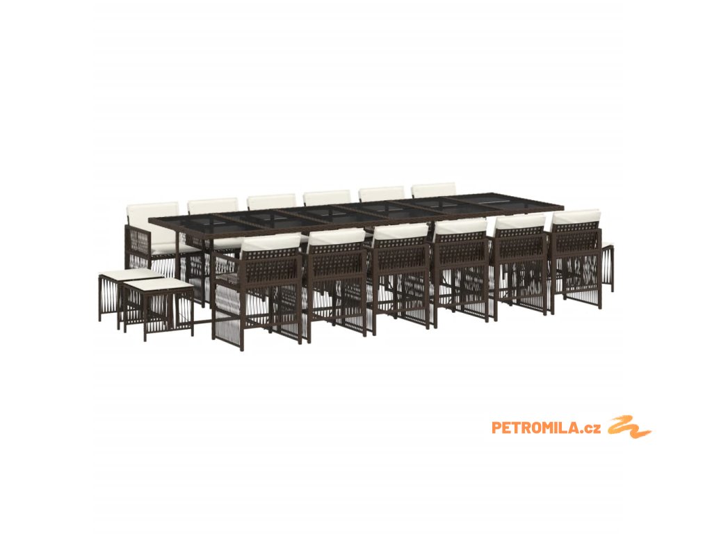 17dílný zahradní jídelní set s poduškami hnědý polyratan