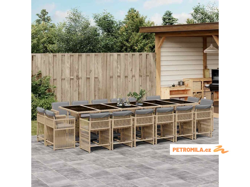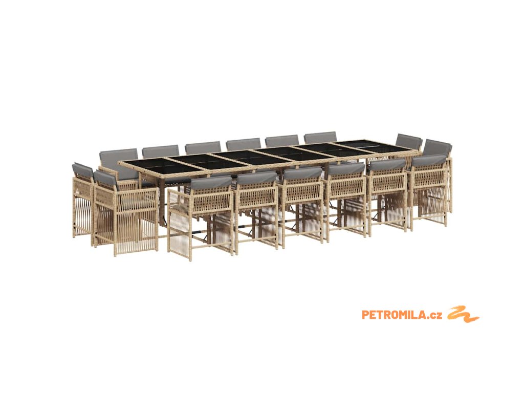 17dílný zahradní jídelní set s poduškami mix béžové polyratan