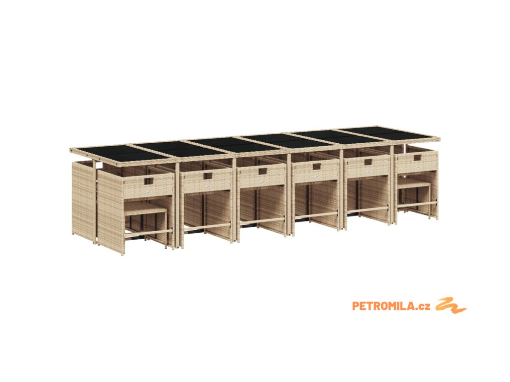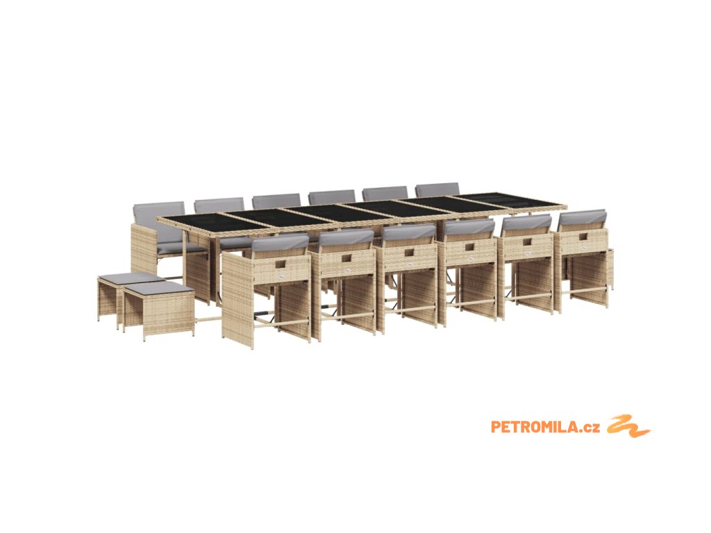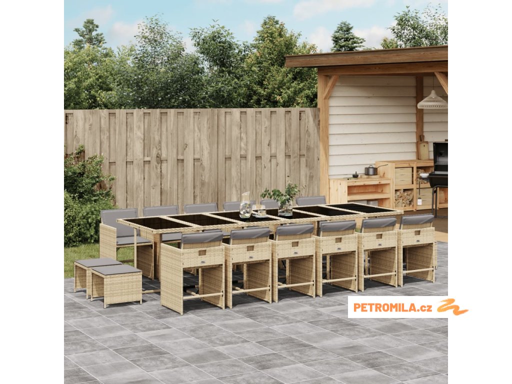 17dílný zahradní jídelní set s poduškami mix béžové polyratan