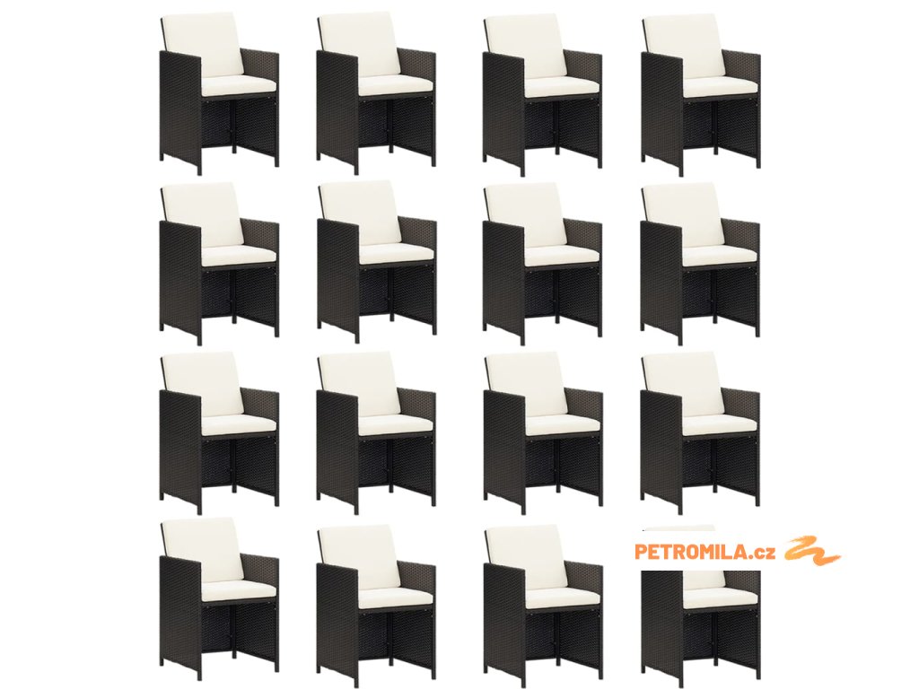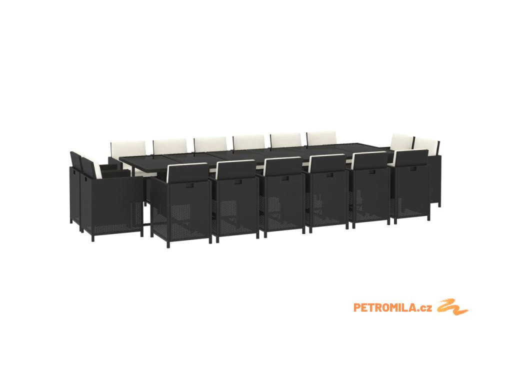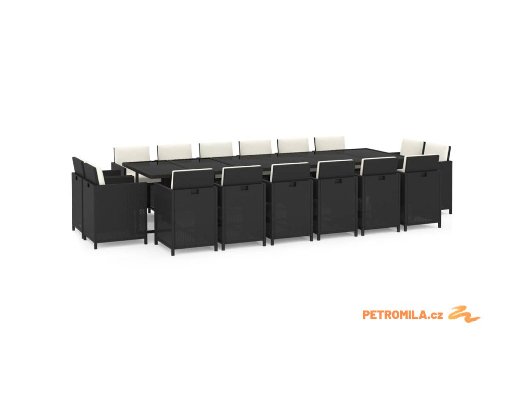 17dílný zahradní jídelní set s poduškami polyratan černý