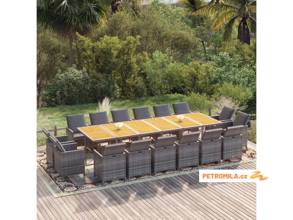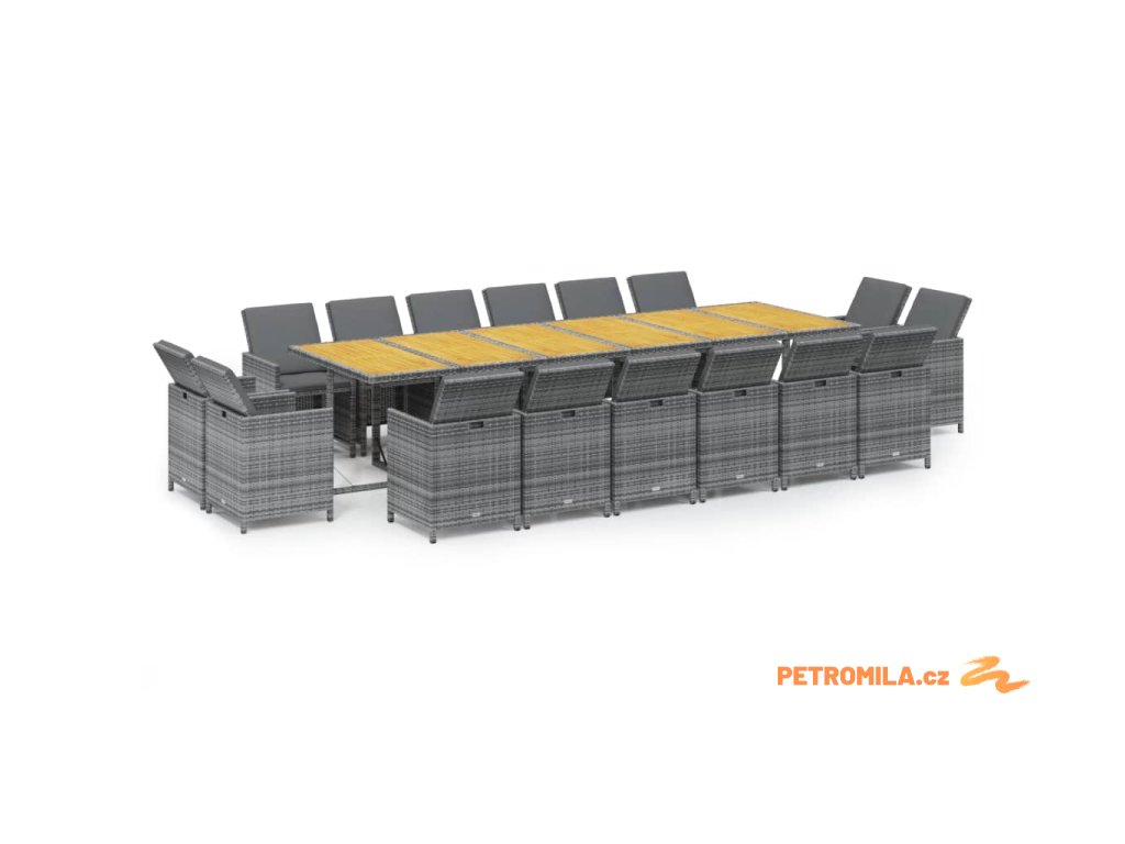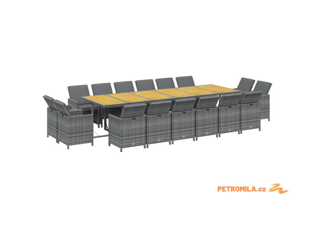 17dílný zahradní jídelní set s poduškami polyratan šedý