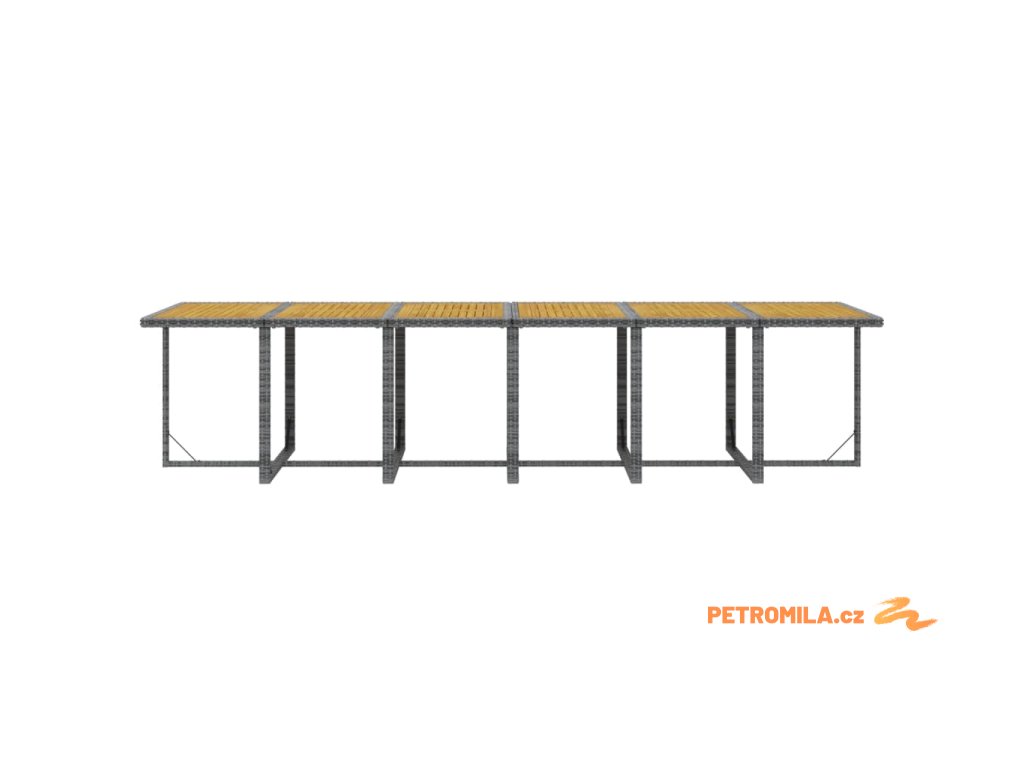 - Materiál: PE ratan, práškově lakovaná ocel, masivní akáciové dřevo s přírodní olejovou povrchovou úpravou