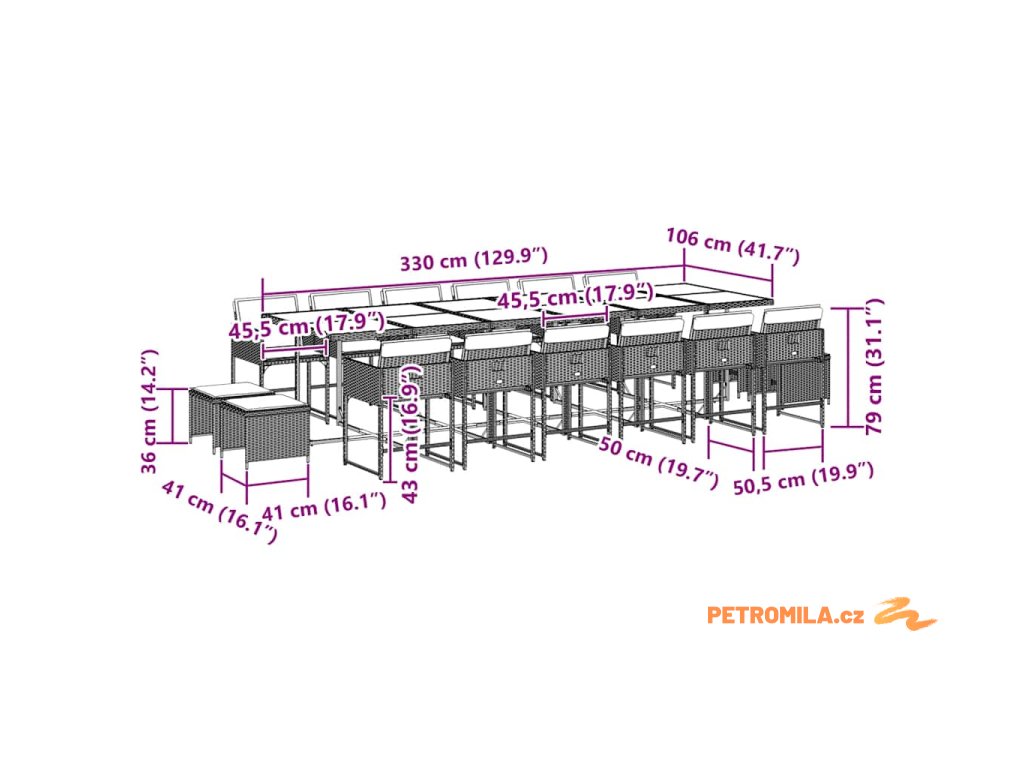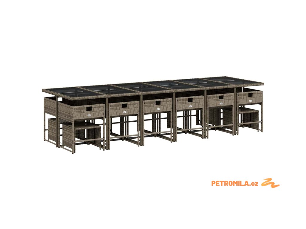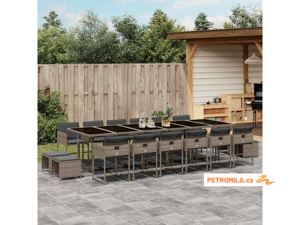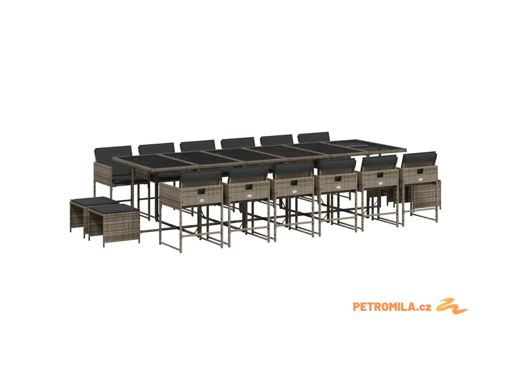 17dílný zahradní jídelní set s poduškami šedý polyratan