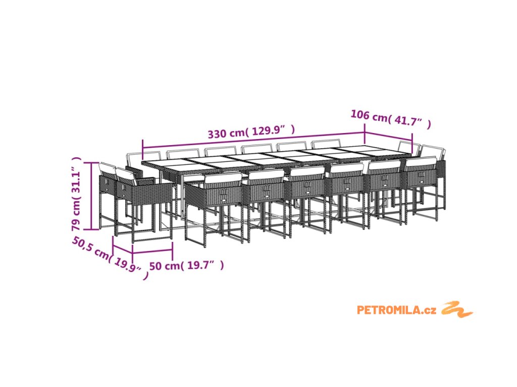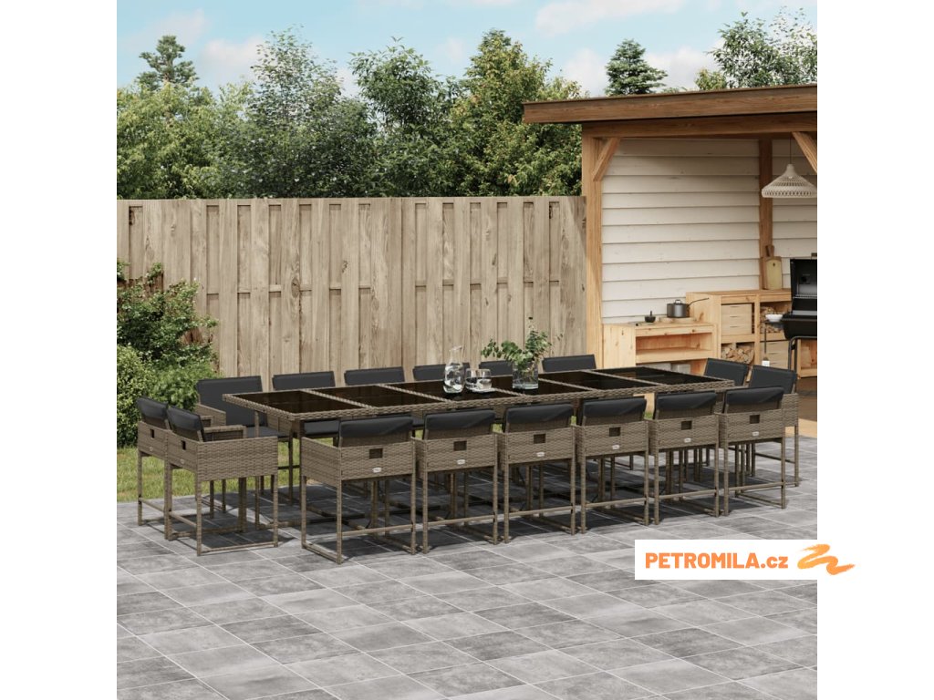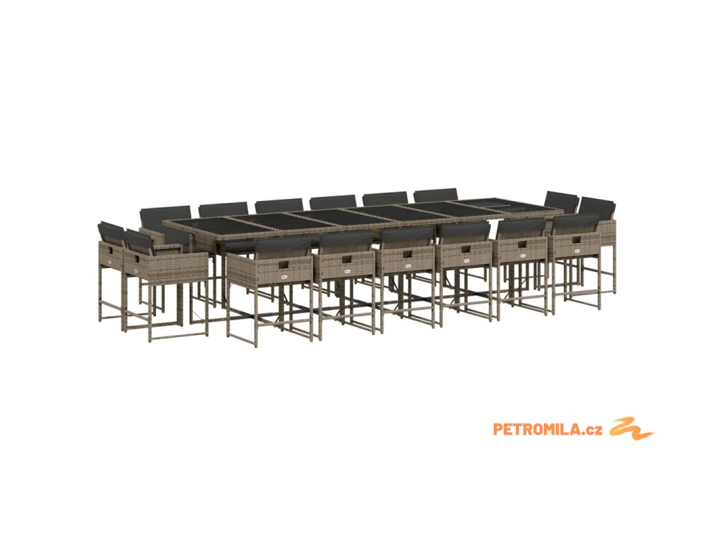 17dílný zahradní jídelní set s poduškami šedý polyratan