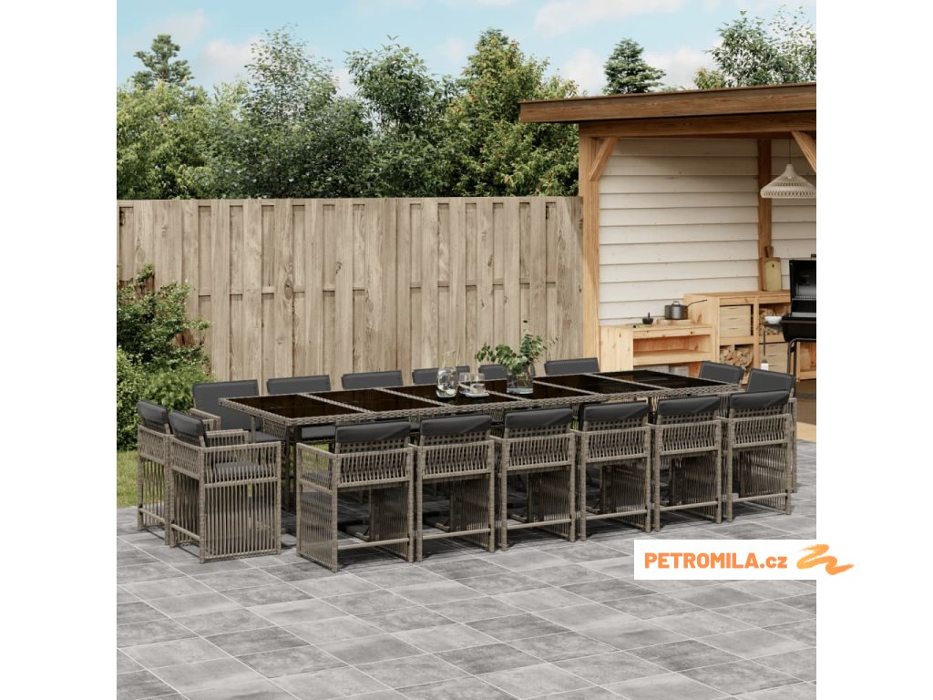 17dílný zahradní jídelní set s poduškami šedý polyratan