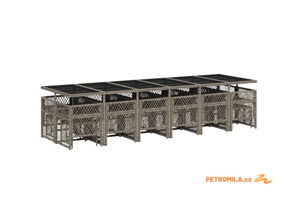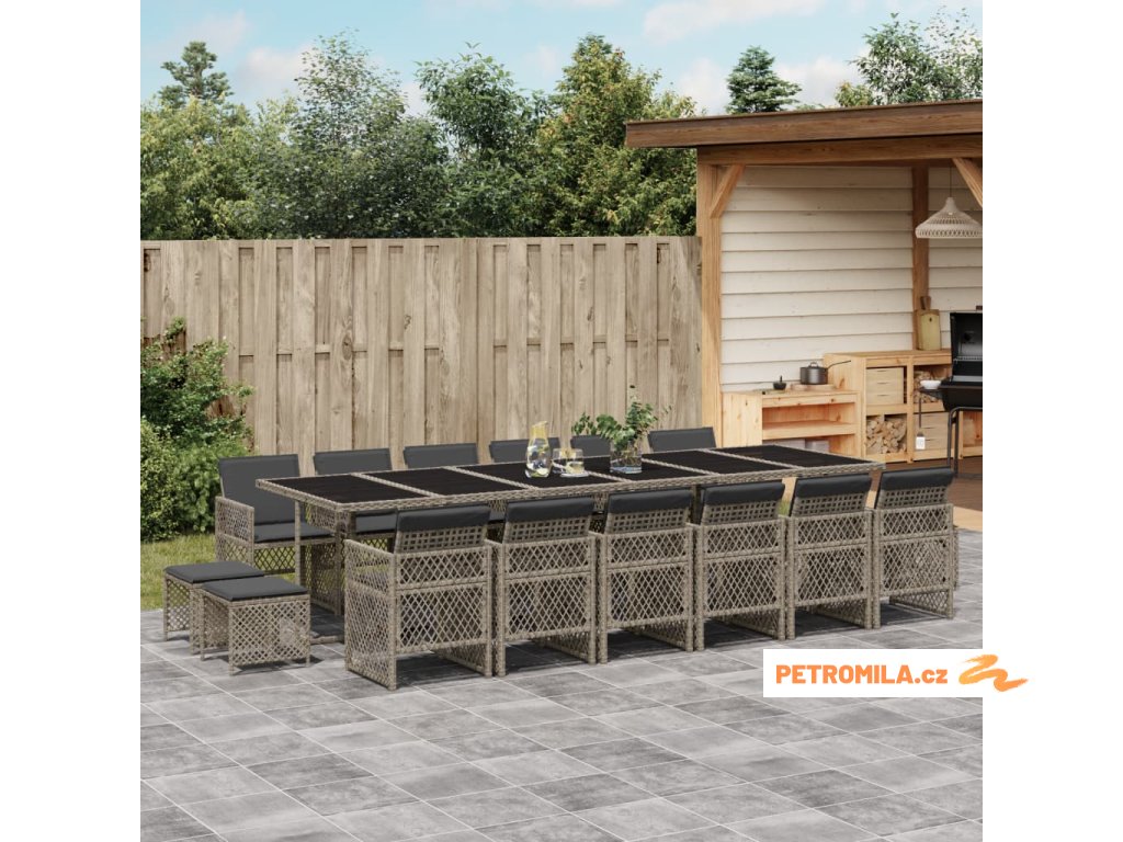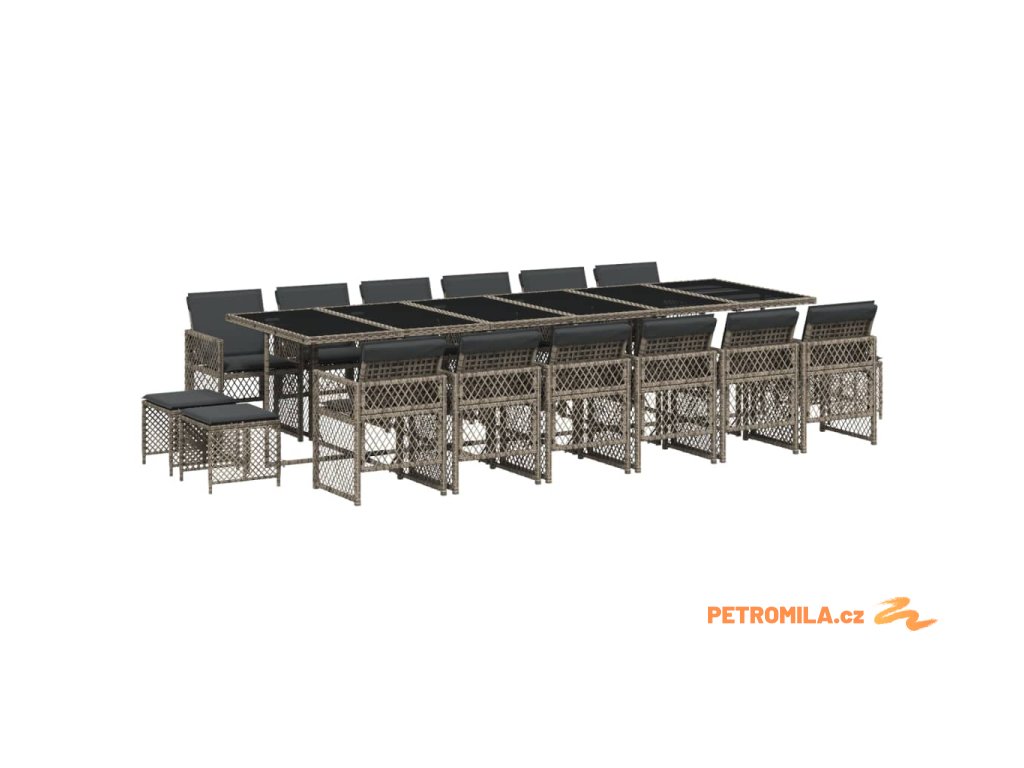 17dílný zahradní jídelní set s poduškami šedý polyratan
