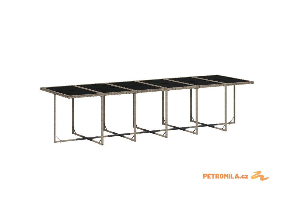 - Materiál: PE ratan, práškově lakovaná ocel, tvrzené sklo