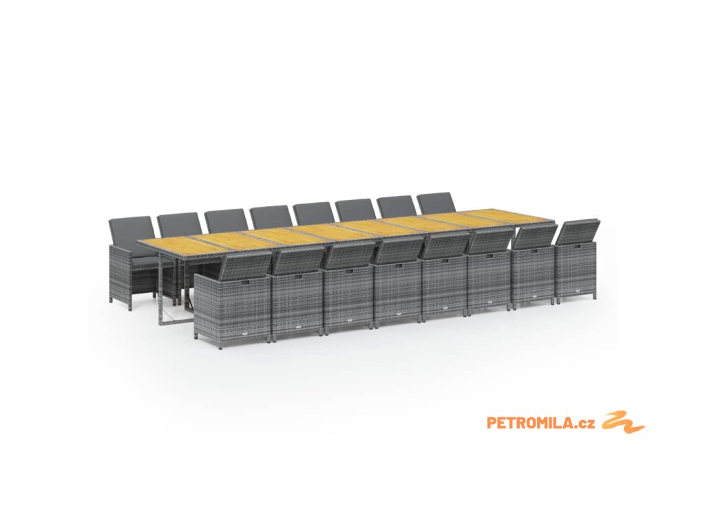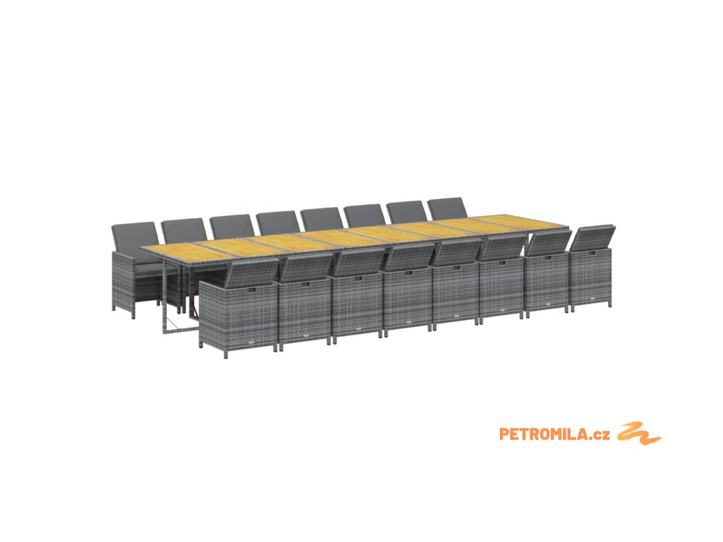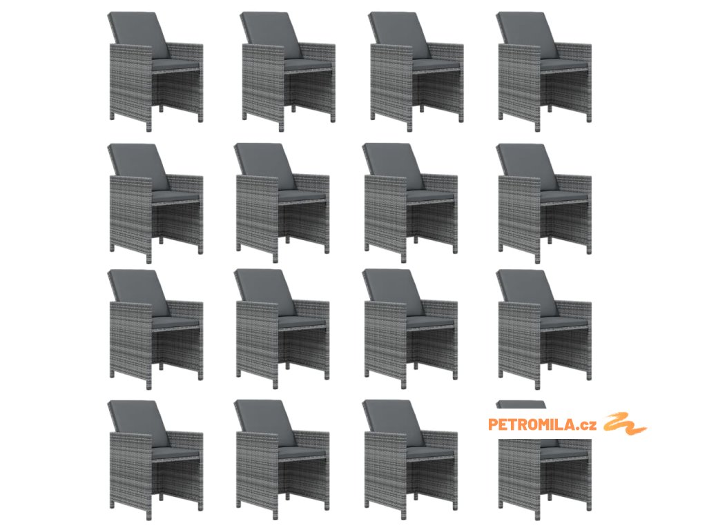 17dílný zahradní jídelní set s poduškami šedý polyratan