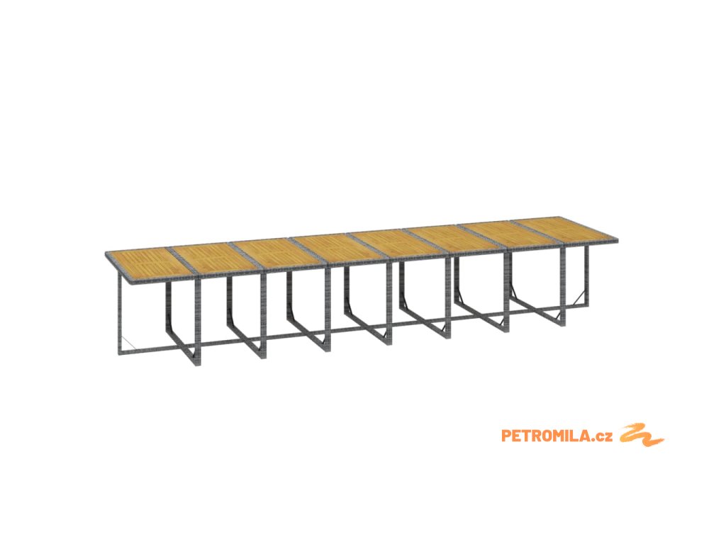 - Materiál: PE ratan, práškově lakovaná ocel, masivní akáciové dřevo s přírodní olejovou povrchovou úpravou