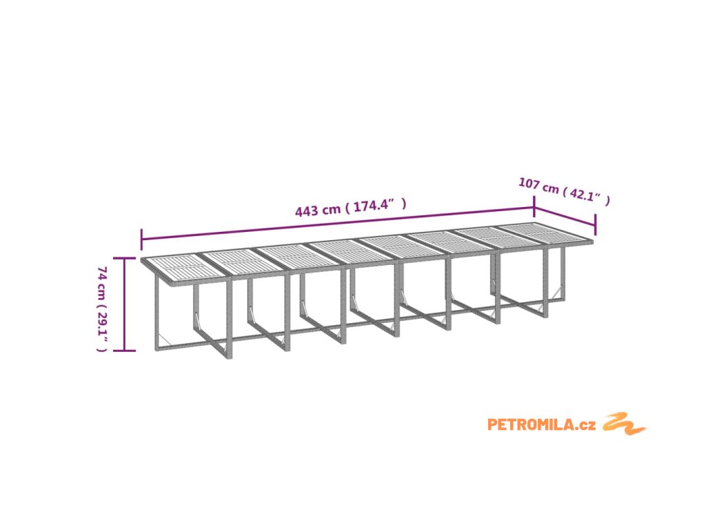 - Rozměry: 443 x 107 x 74 cm (D x Š x V)
