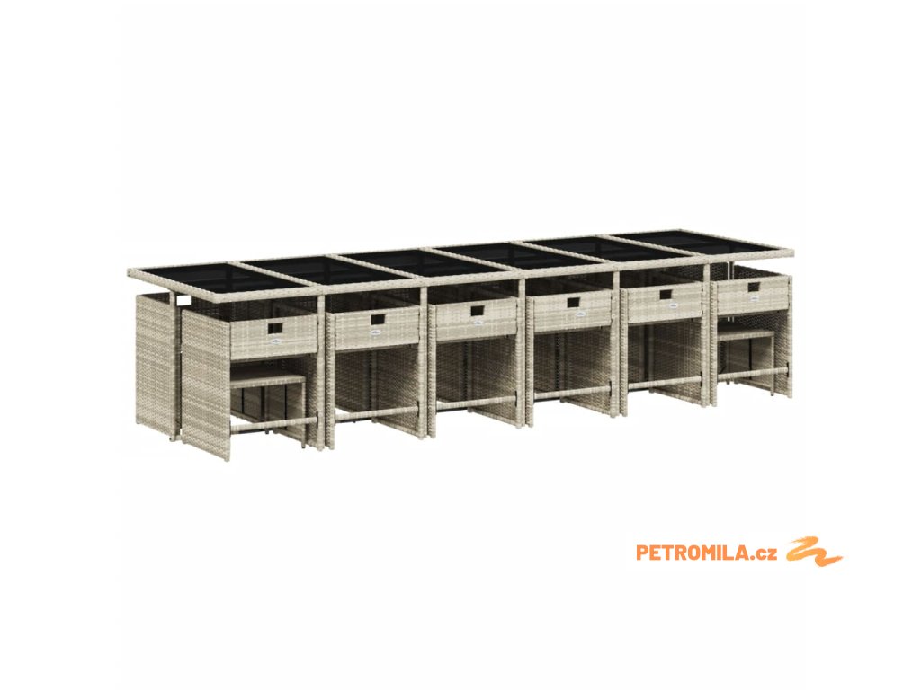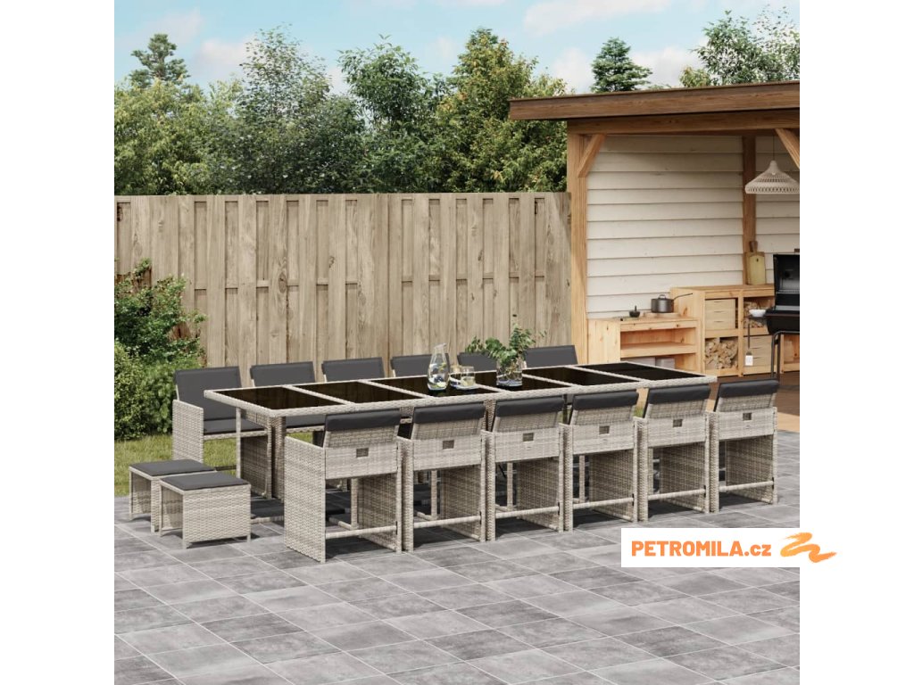 17dílný zahradní jídelní set s poduškami světle šedý polyratan