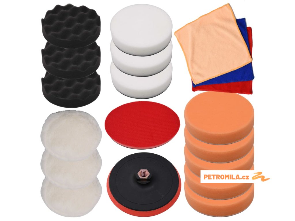 Sada leštících kotoučů a molitanů vám umožní dosáhnout rovnoměrného vyleštění a snížit ztrátu materiálu v důsledku postřiku.