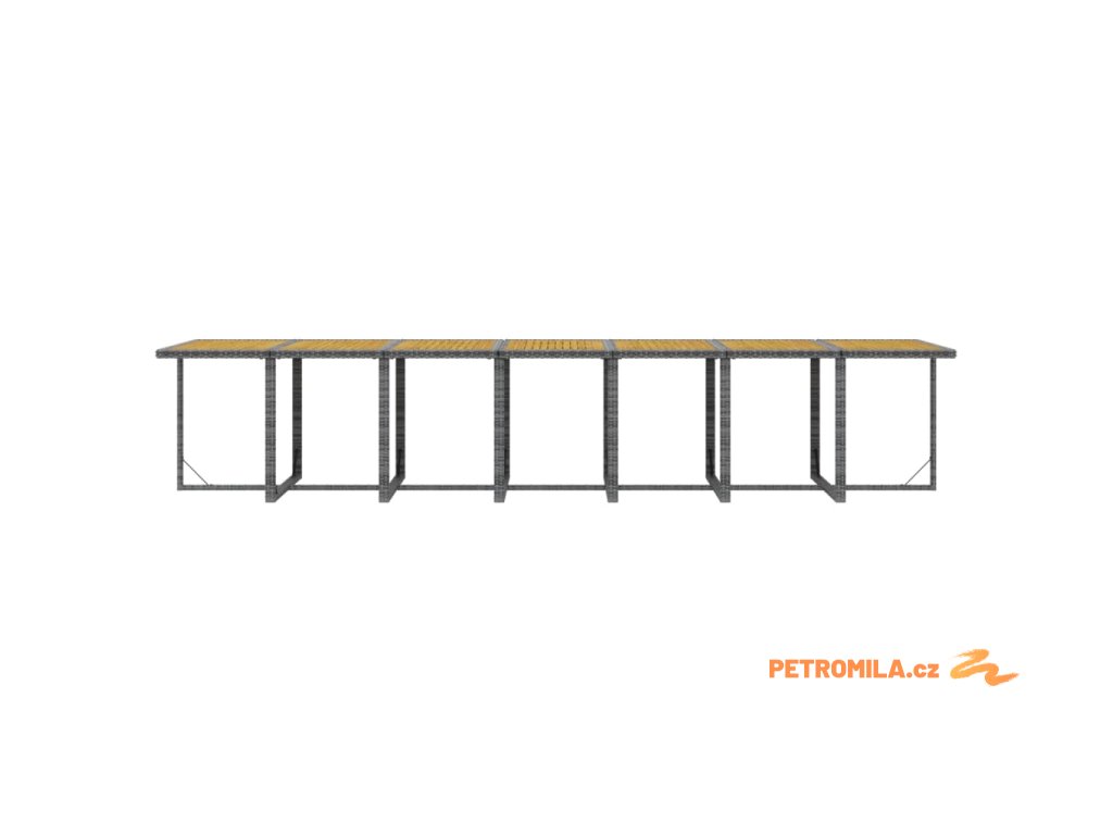 - Materiál: PE ratan, práškově lakovaná ocel, masivní akáciové dřevo s přírodní olejovou povrchovou úpravou