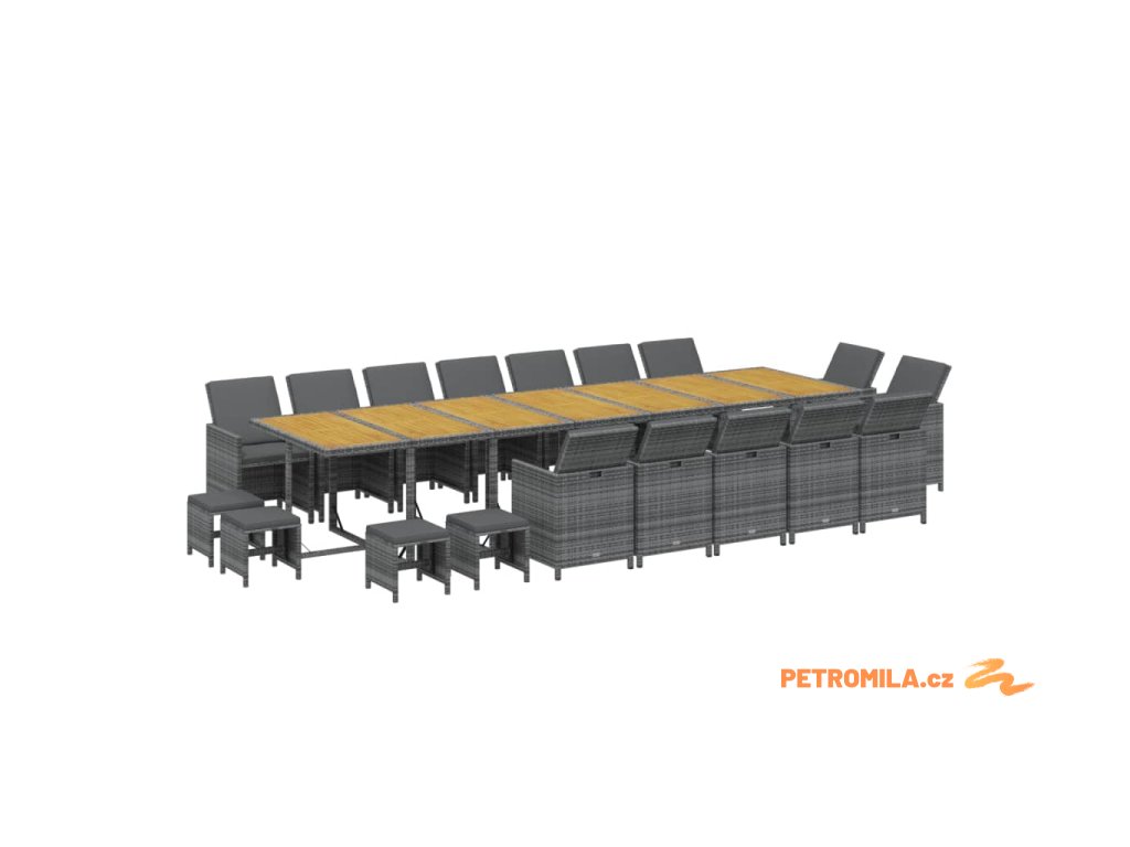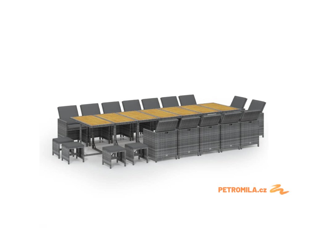 19dílný zahradní jídelní set s poduškami šedý polyratan