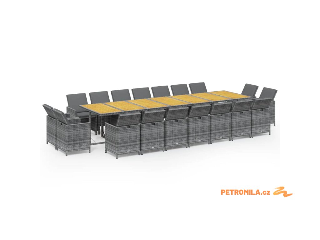 19dílný zahradní jídelní set s poduškami šedý polyratan