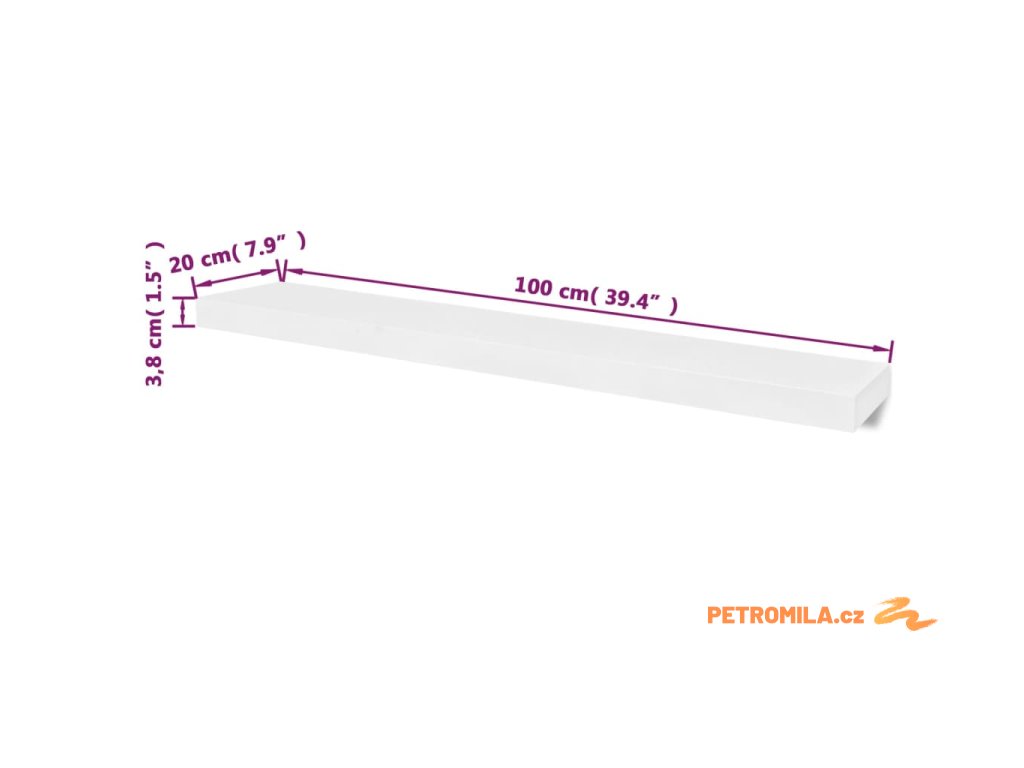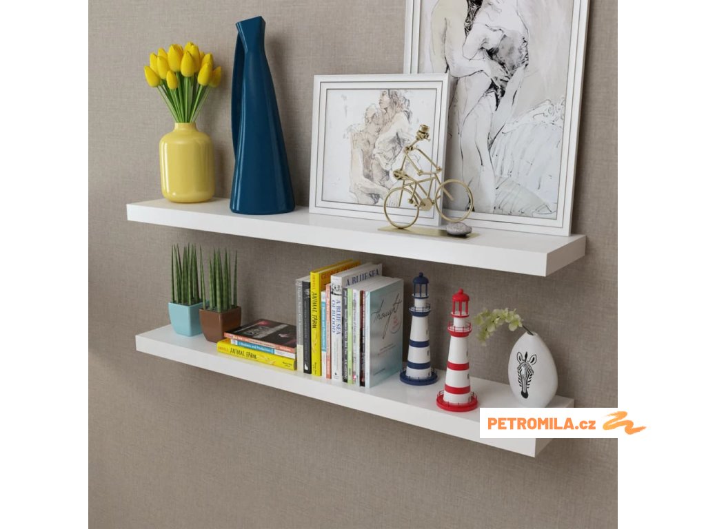 2 bílé nástěnné plovoucí MDF police na knihy a DVD
