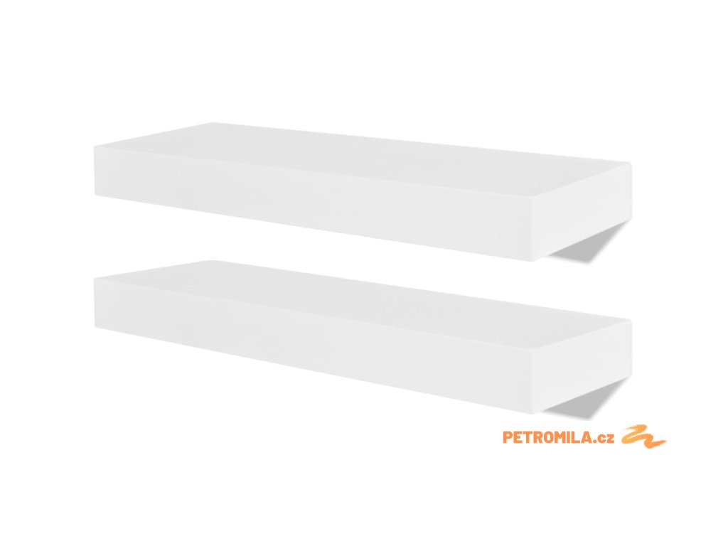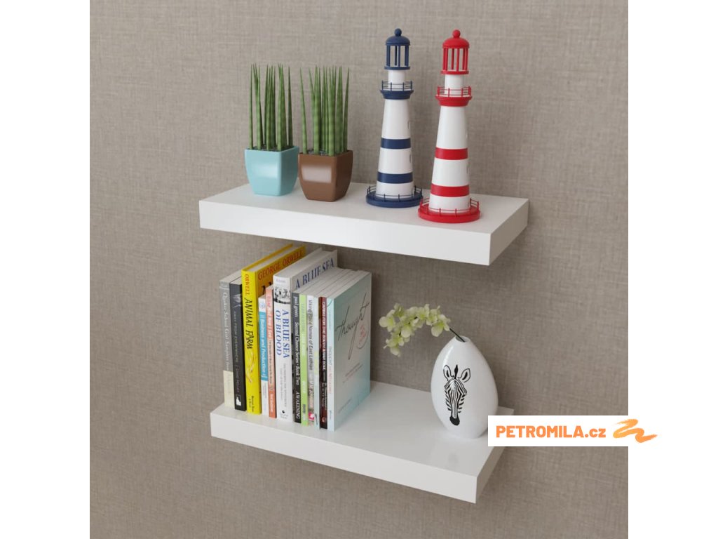 2 bílé nástěnné plovoucí MDF police na knihy a DVD