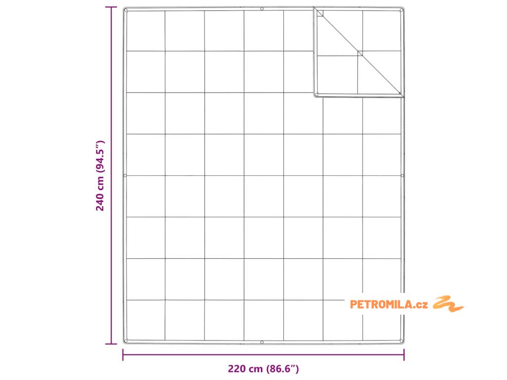 - Celkové rozměry: 240 x 220 cm (W x L)