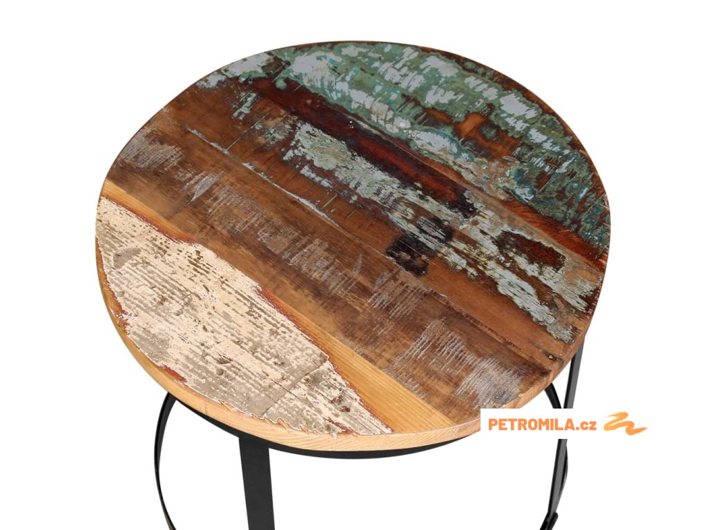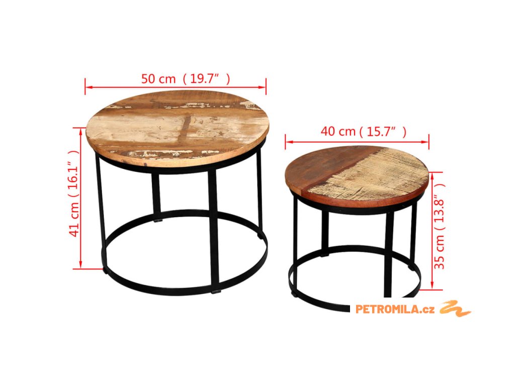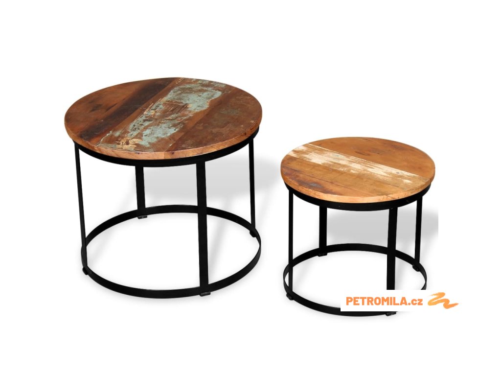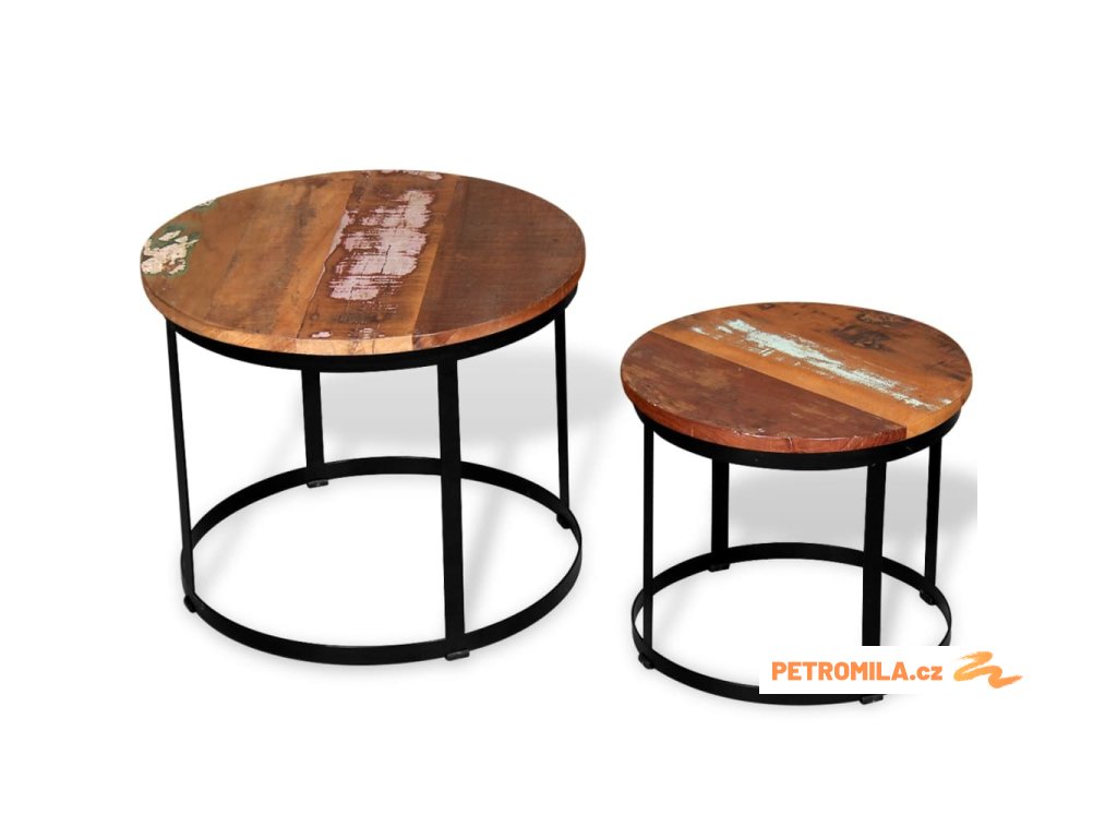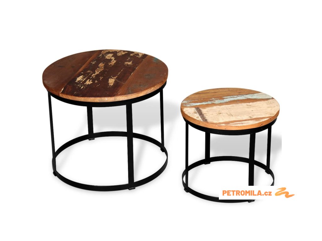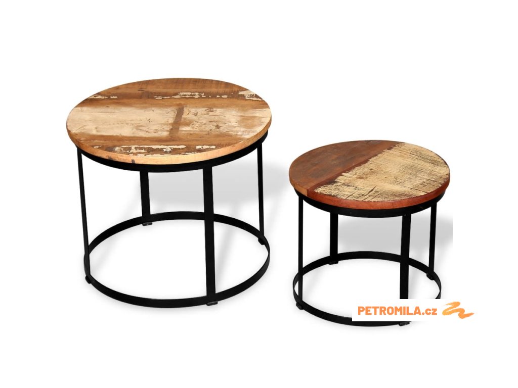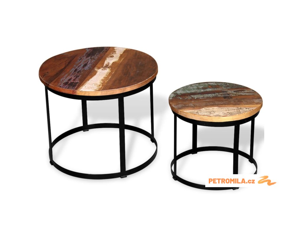 2 konferenční stolky masivní recyklované dřevo kulaté 40cm/50cm