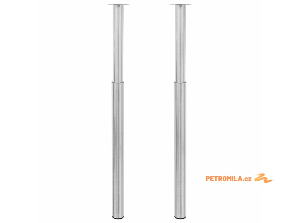 2 teleskopické stolové nohy z broušeného niklu 710 mm - 1100 mm