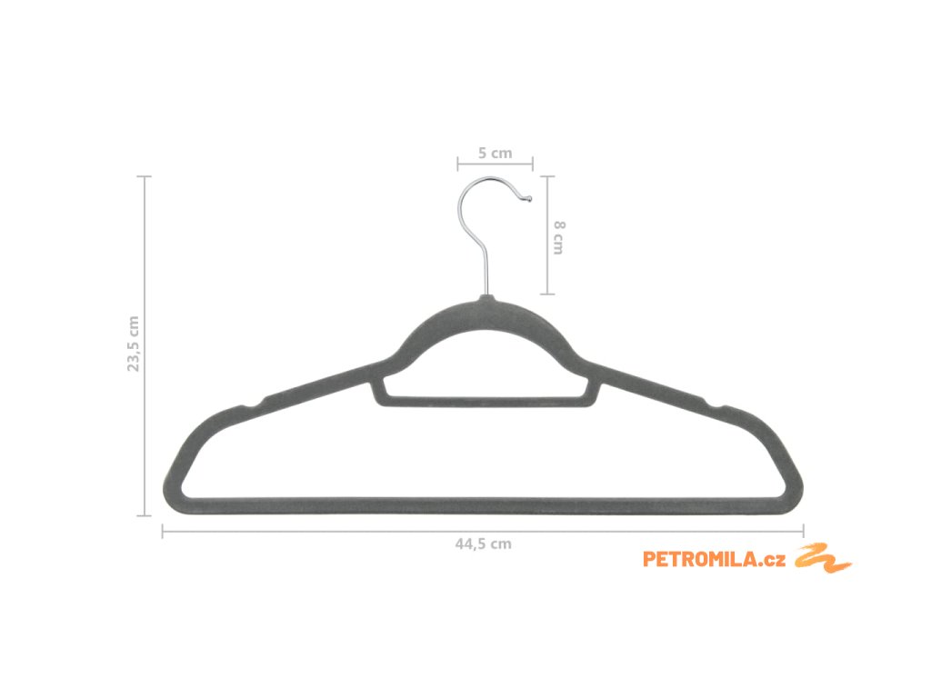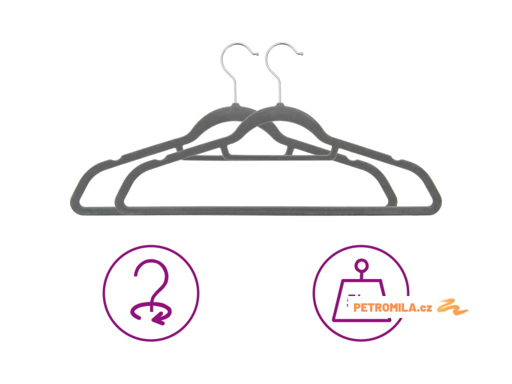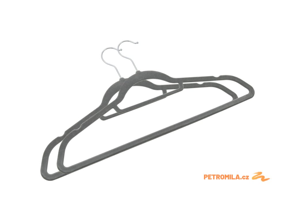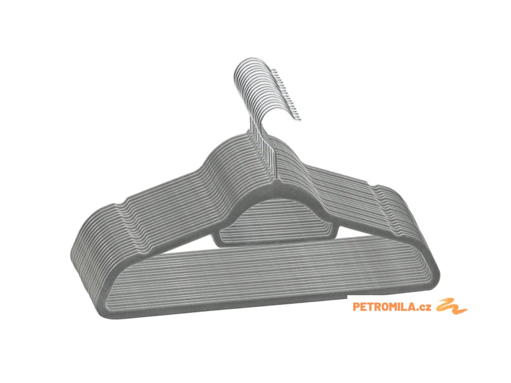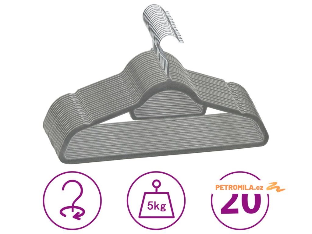 20 ks šatních ramínek protiskluzové šedé samet