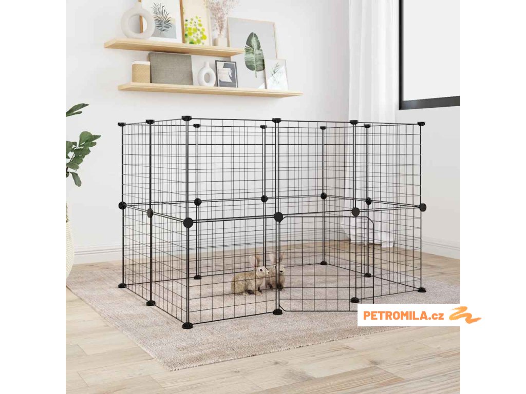 20panelová ohrádka pro zvířata s dvířky černá 35 x 35 cm ocel