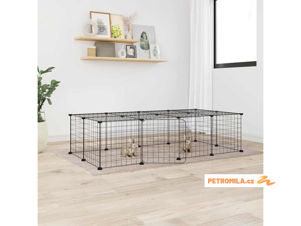 20panelová ohrádka pro zvířata s dvířky černá 35 x 35 cm ocel
