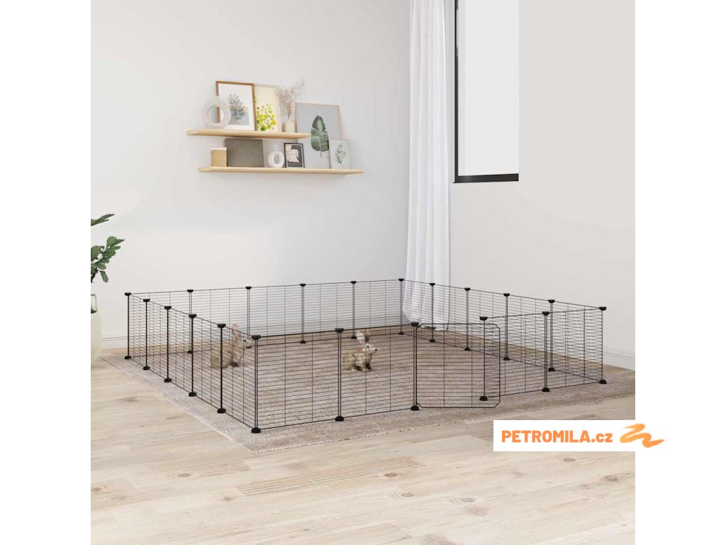 20panelová ohrádka pro zvířata s dvířky černá 35 x 35 cm ocel