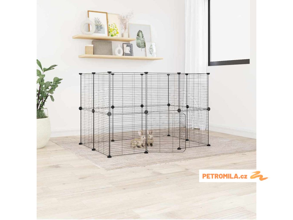20panelová ohrádka pro zvířata s dvířky černá 35 x 35 cm ocel