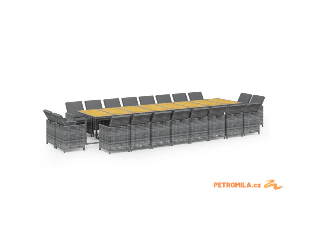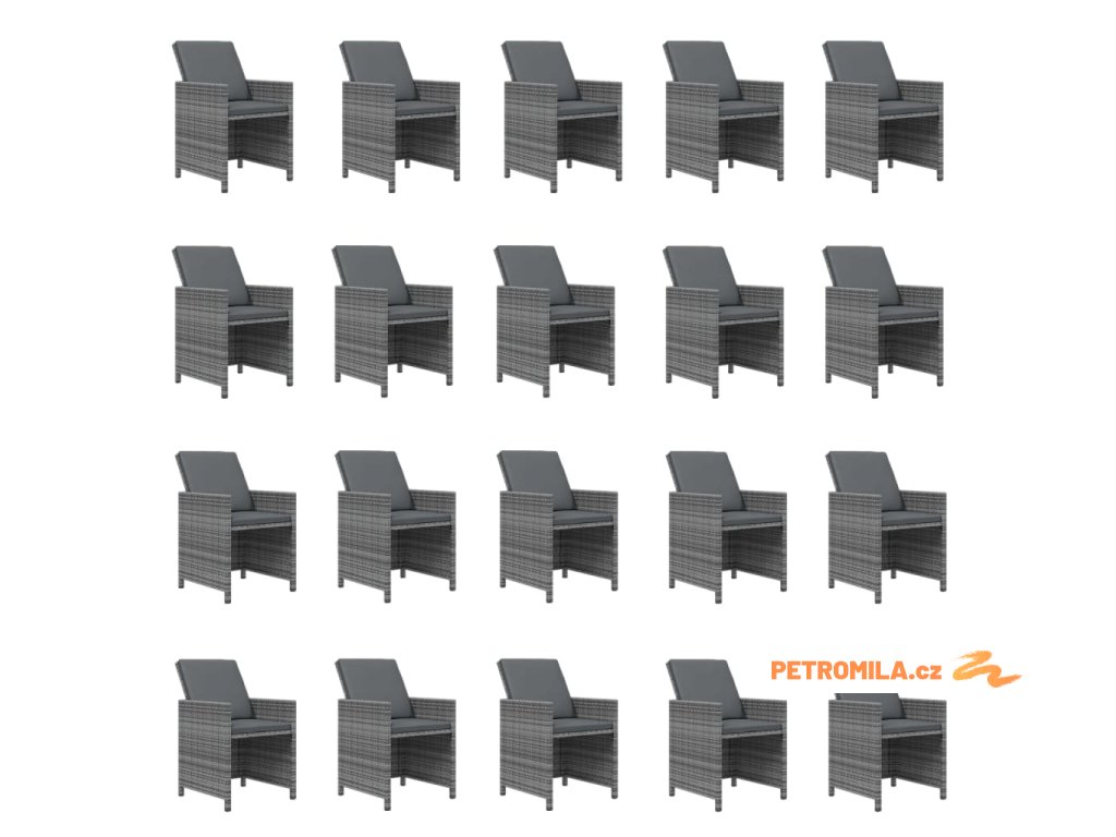 21dílný zahradní jídelní set s poduškami šedý polyratan