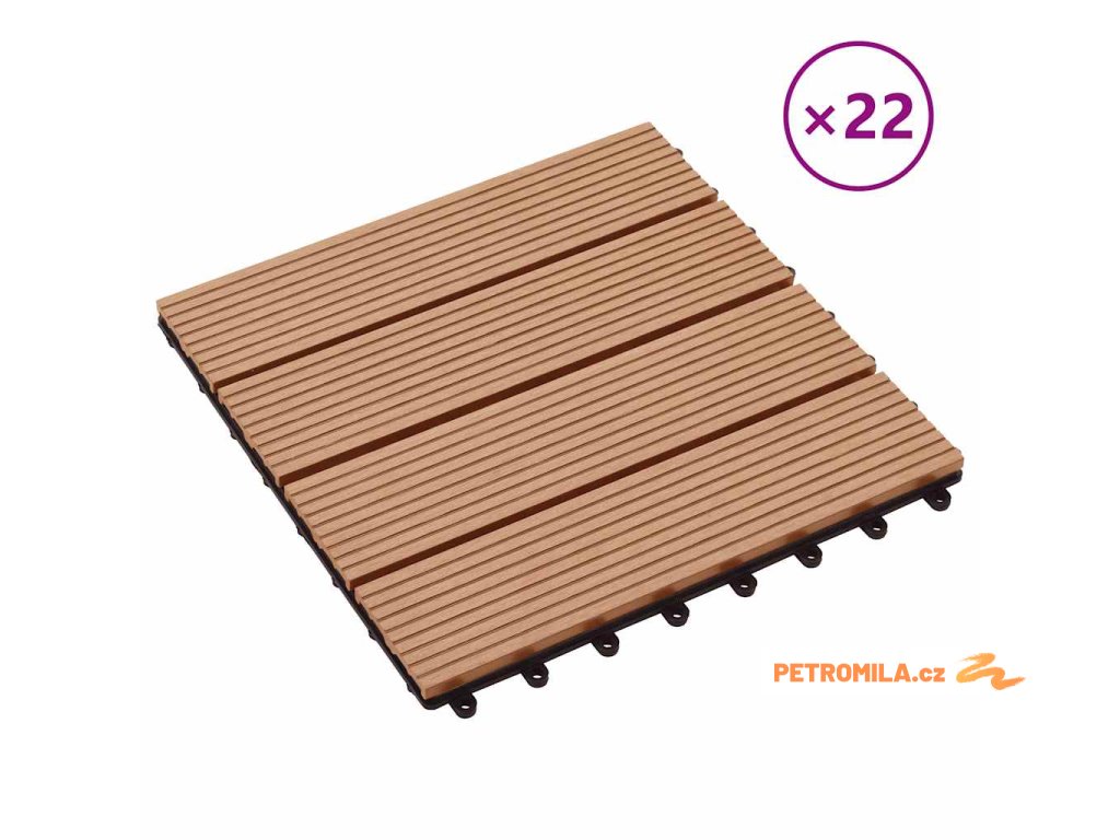 22 ks terasové dlaždice 30 x 30 cm 2 m² WPC barva teak