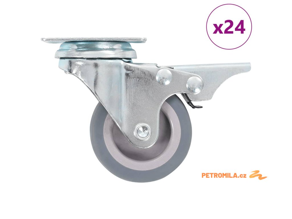 Balení obsahuje 24 otočných koleček, z nichž polovina je s brzdou.