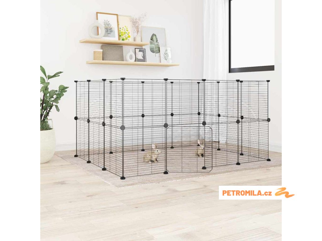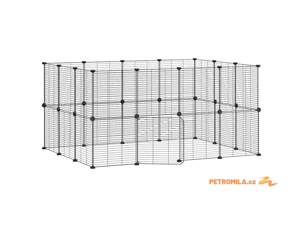 28panelová ohrádka pro zvířata s dvířky černá 35 x 35 cm ocel