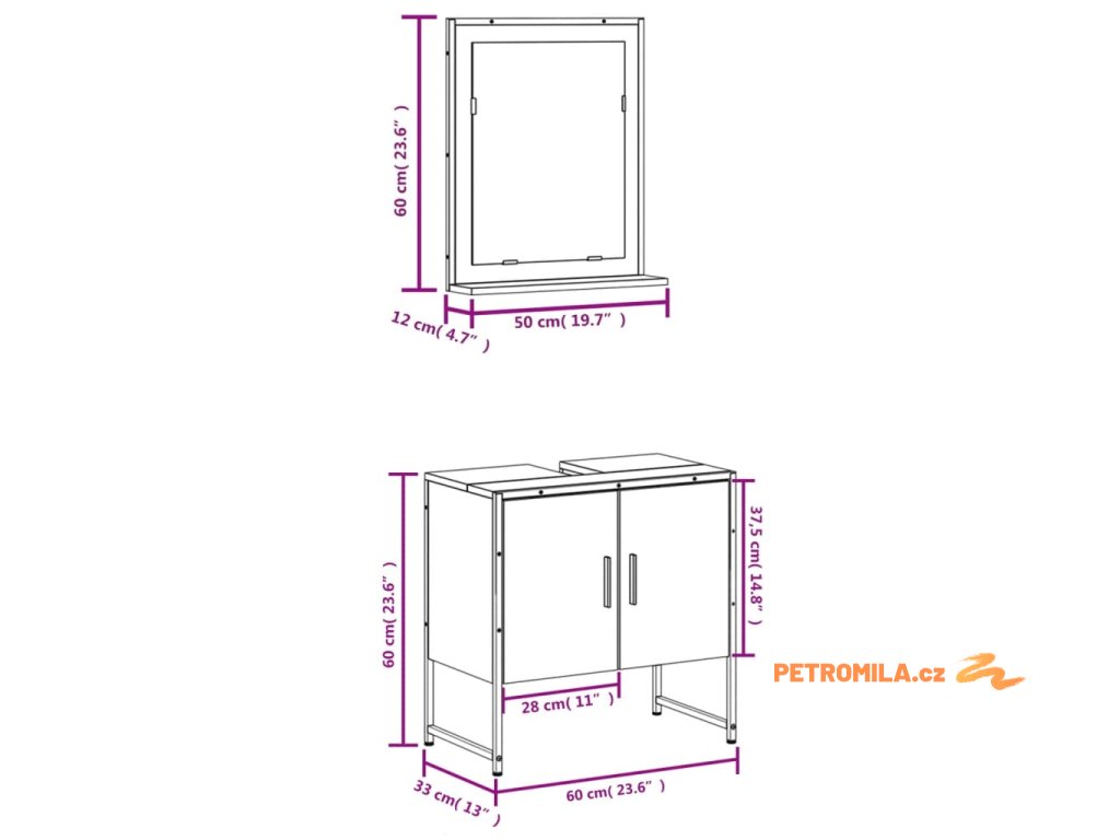 - Rozměry umyvadlové skříňky: 60 x 33 x 60 cm (D x Š x V)