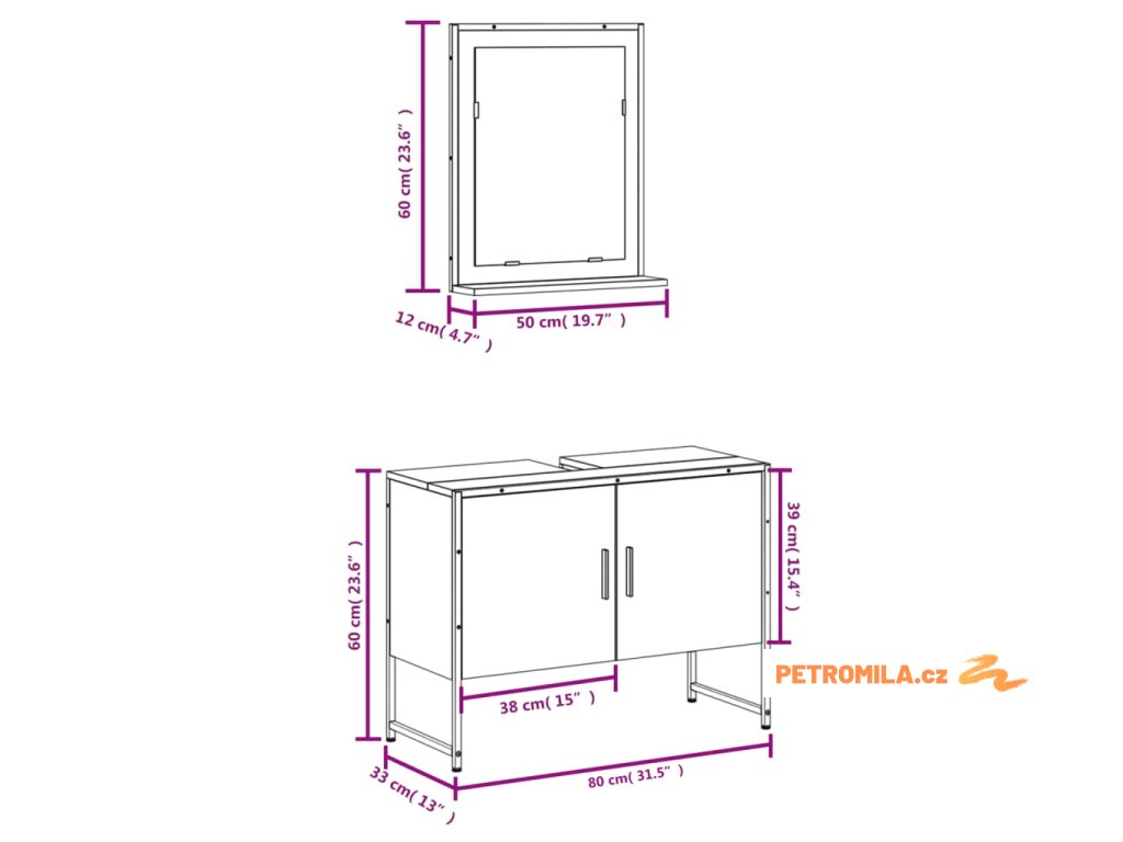 - Rozměry umyvadlové skříňky: 80 x 33 x 60 cm (D x Š x V)