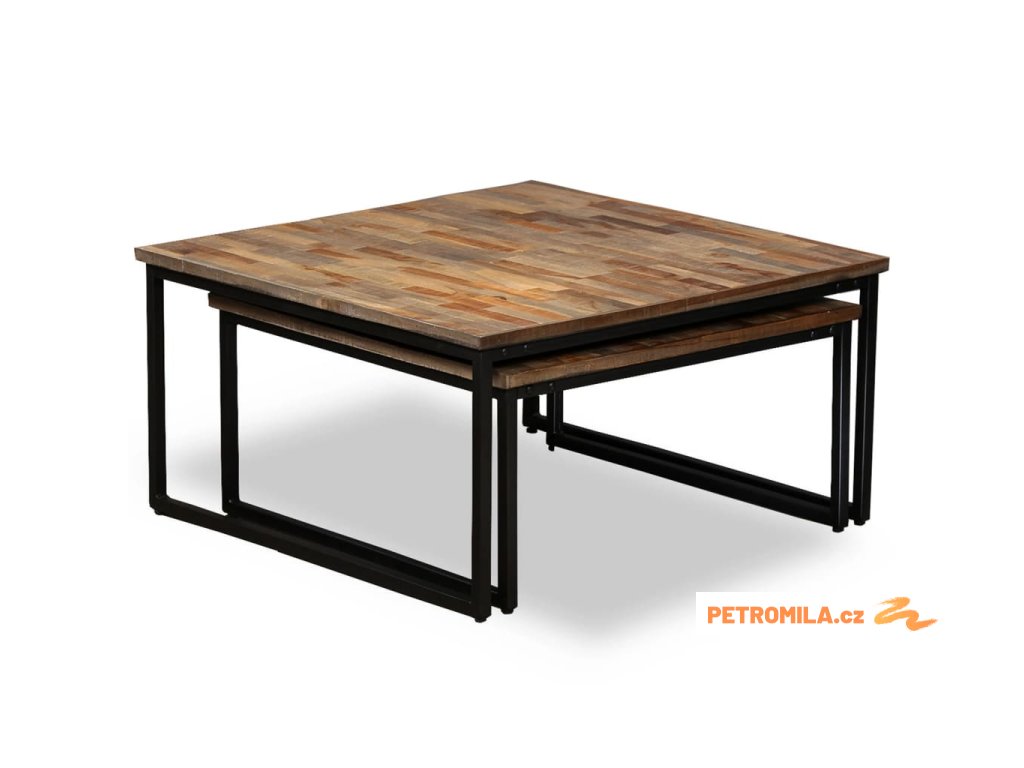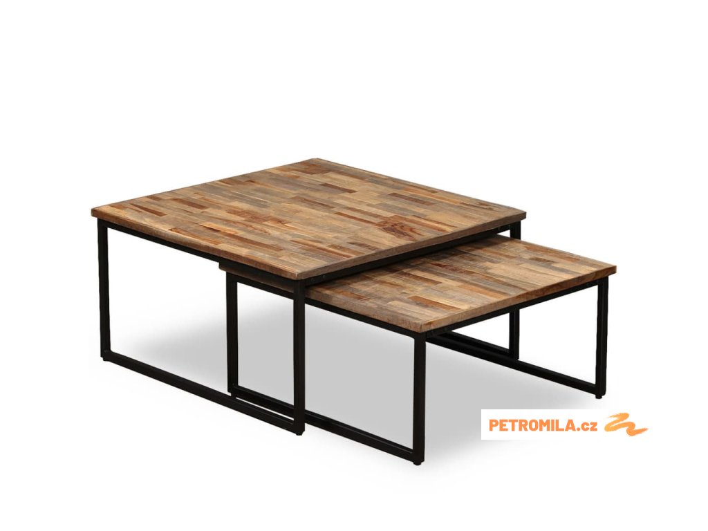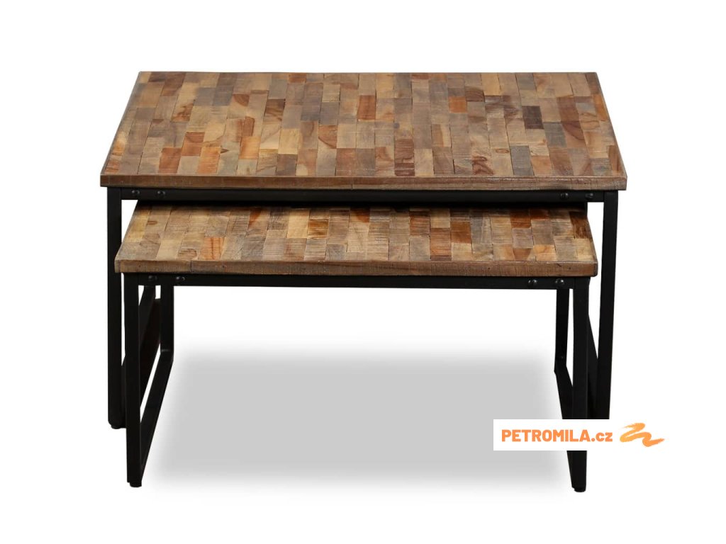 2dílná sada stohovatelných stolků, masivní recyklované dřevo
