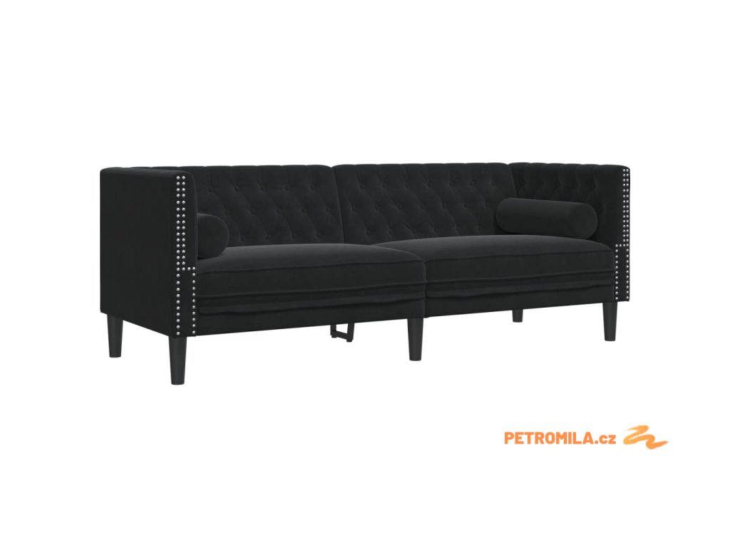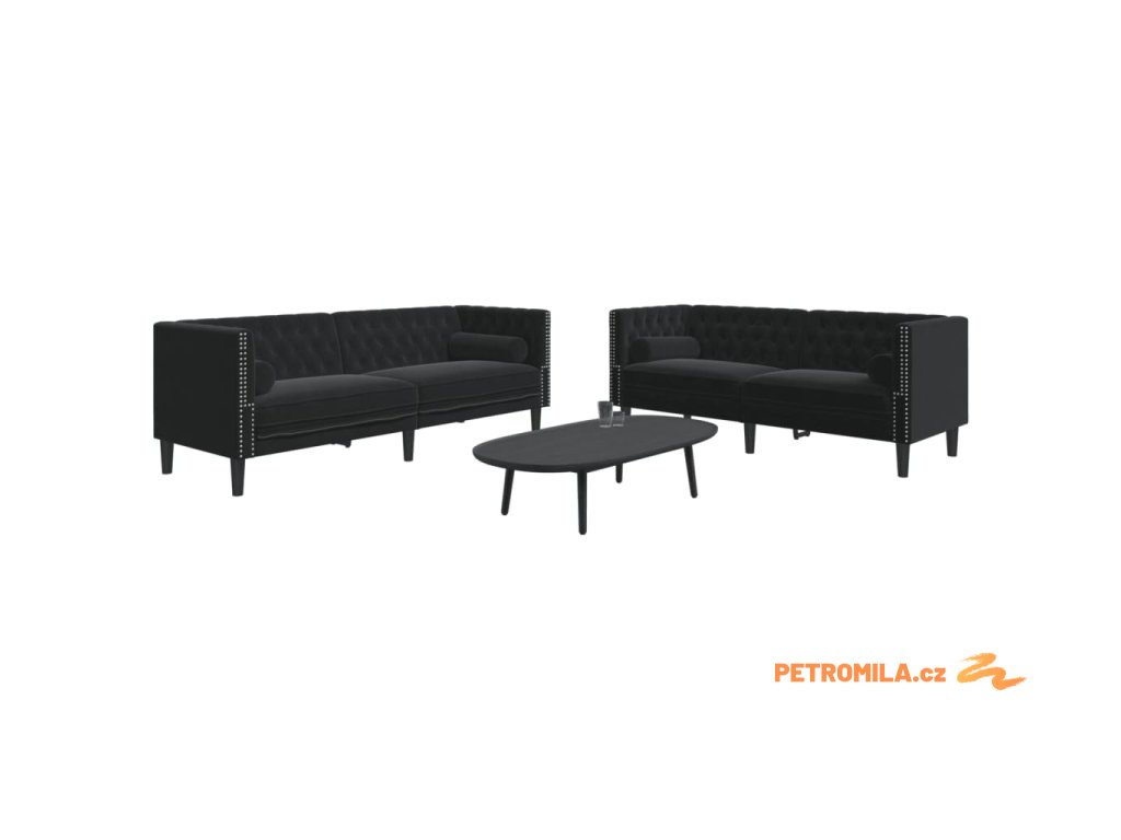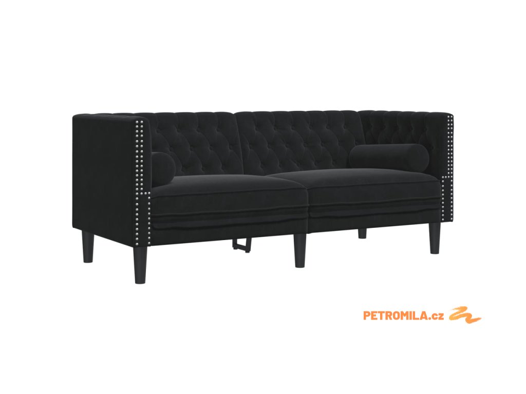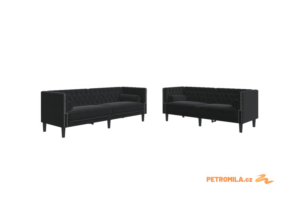 2dílná sedací souprava Chesterfield s podhlavníky černá samet