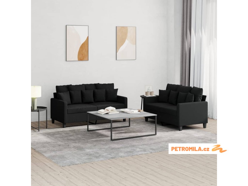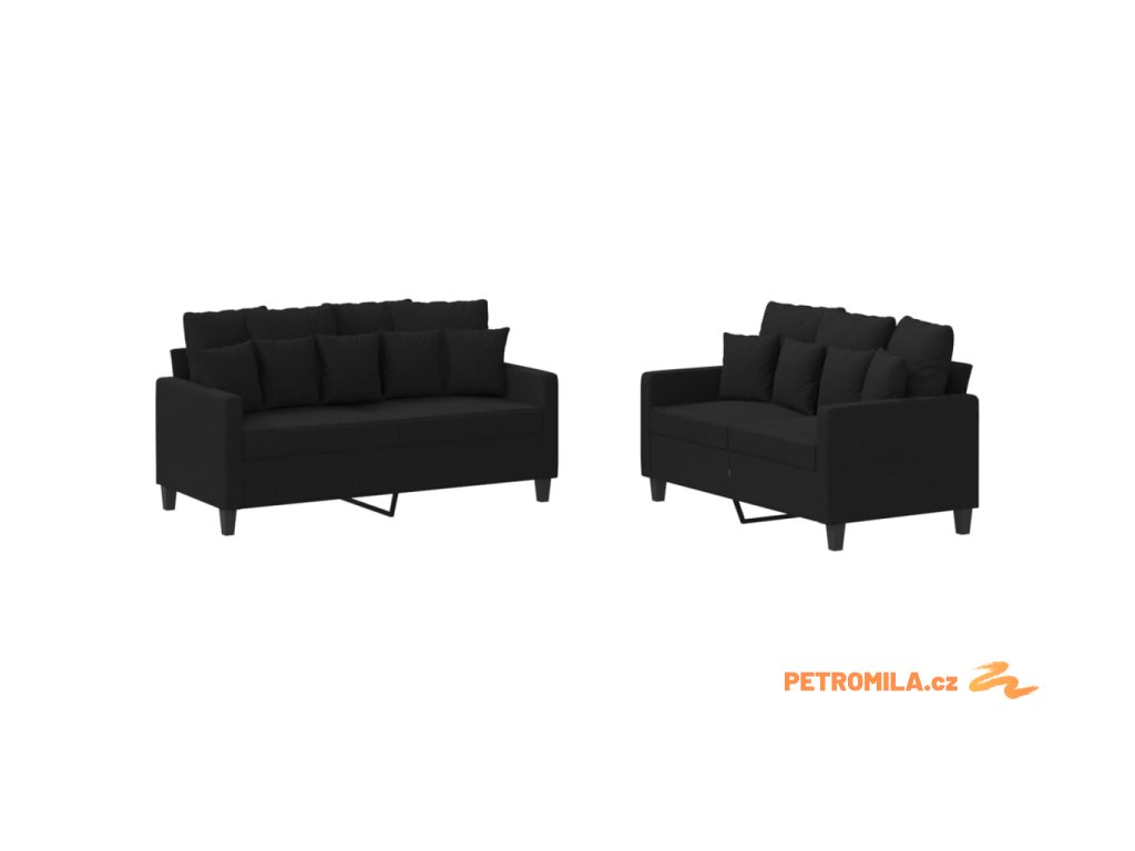 2dílná sedací souprava s poduškami černá textil