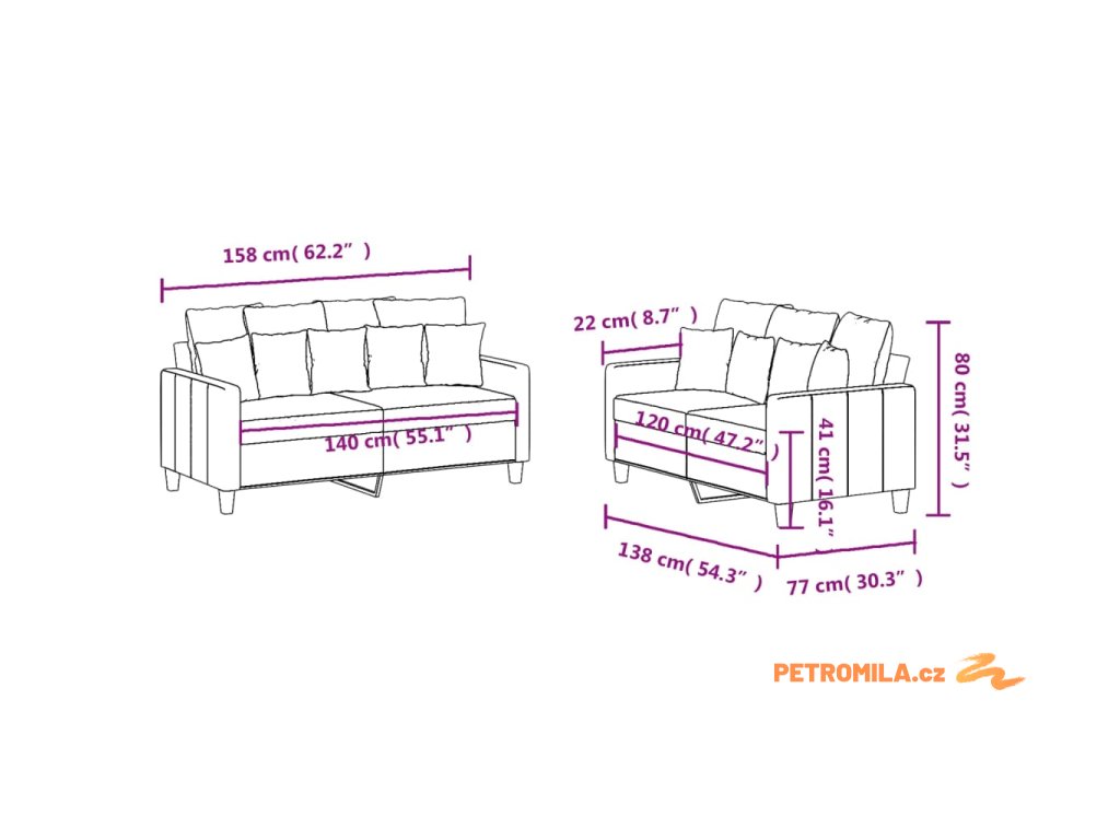 - 2x dvoumístná pohovka