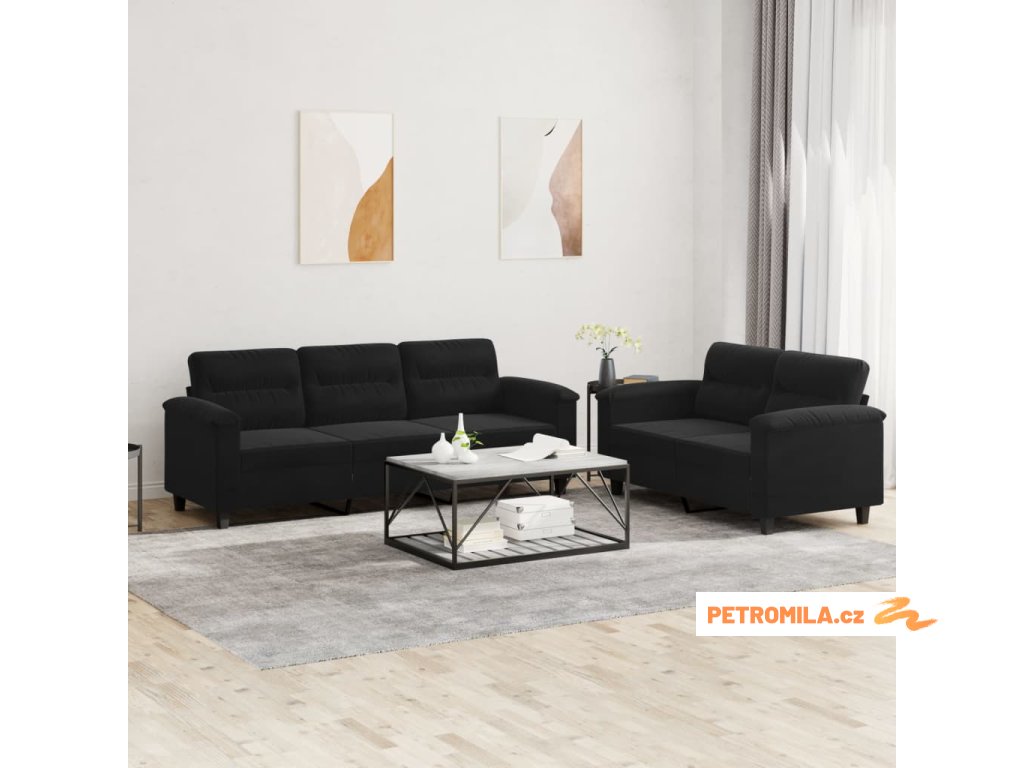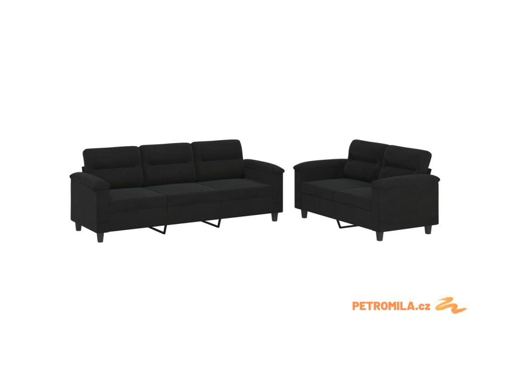 2dílná sedací souprava s poduškami černá tkanina z mikrovlákna