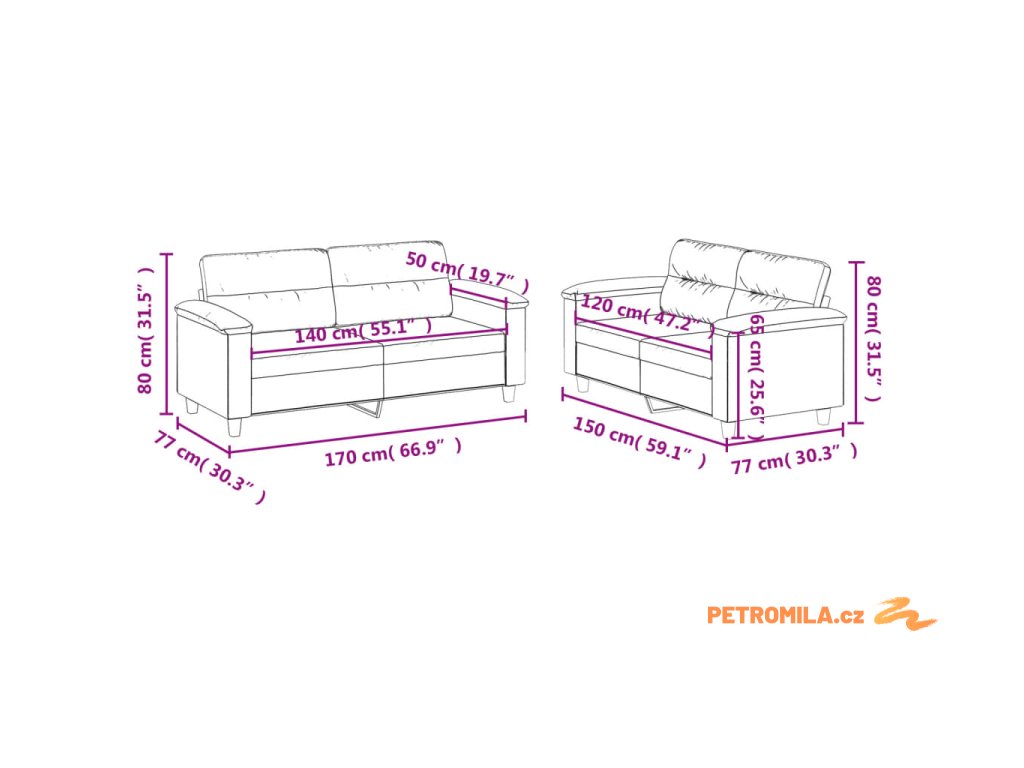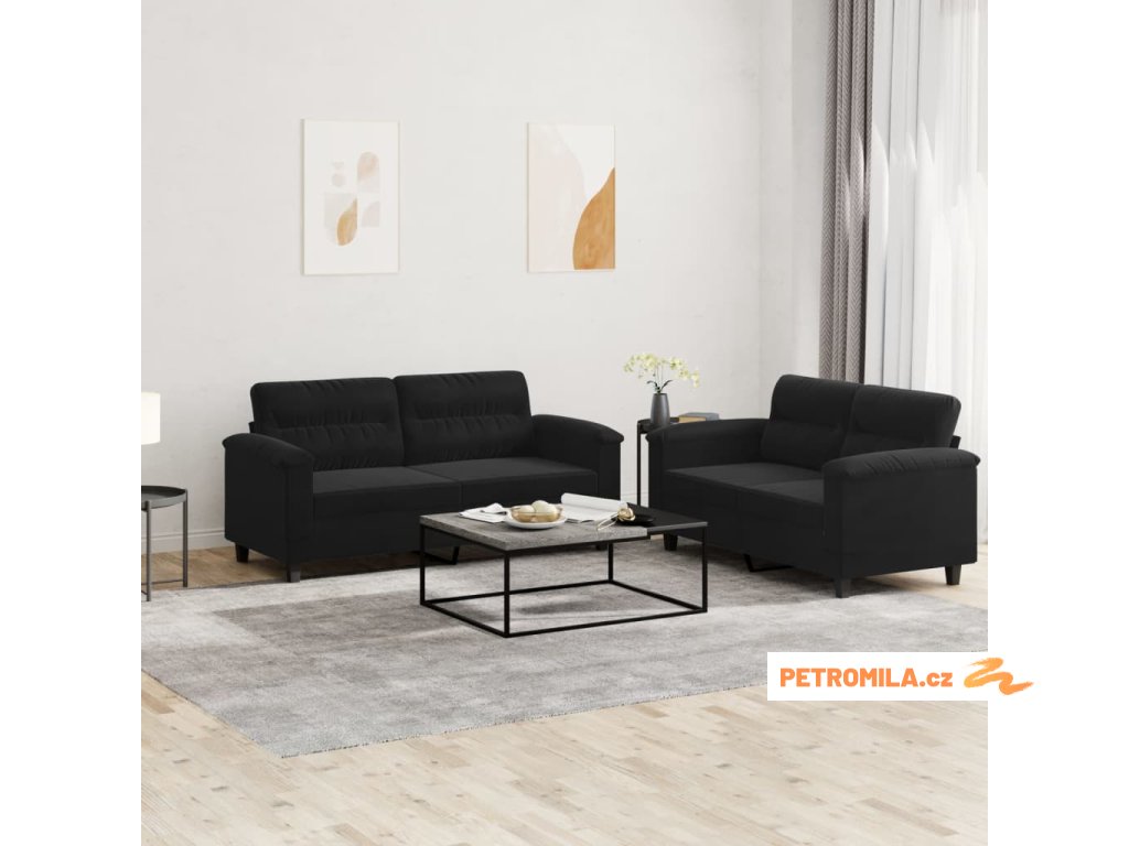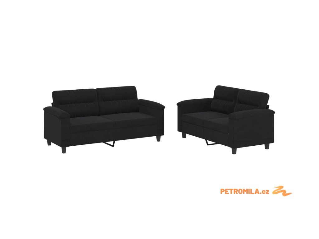 2dílná sedací souprava s poduškami černá tkanina z mikrovlákna