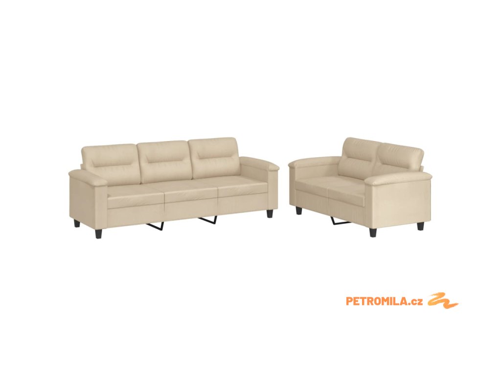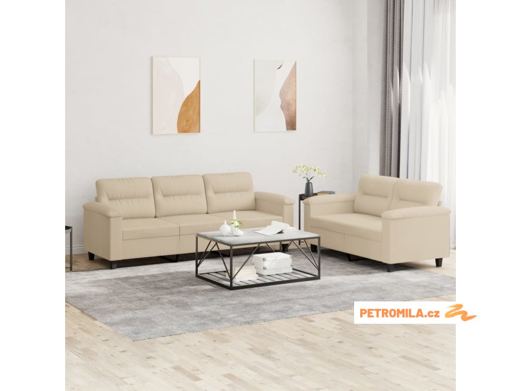 2dílná sedací souprava s poduškami krémová mikrovlákno