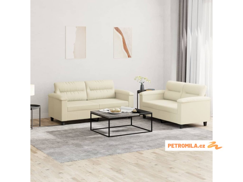2dílná sedací souprava s poduškami krémová umělá kůže