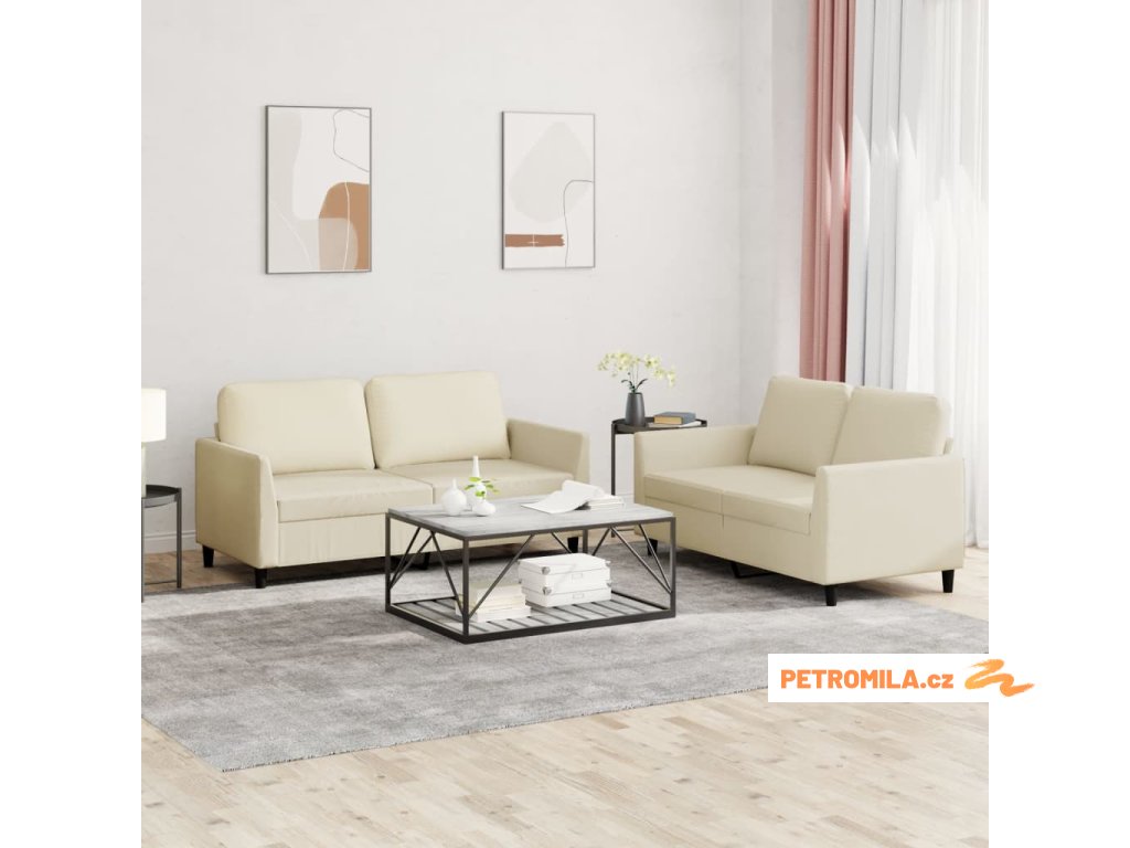 2dílná sedací souprava s poduškami krémová umělá kůže