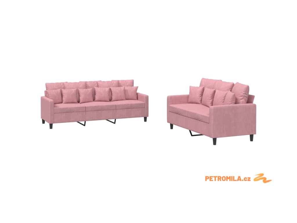2dílná sedací souprava s poduškami růžová samet