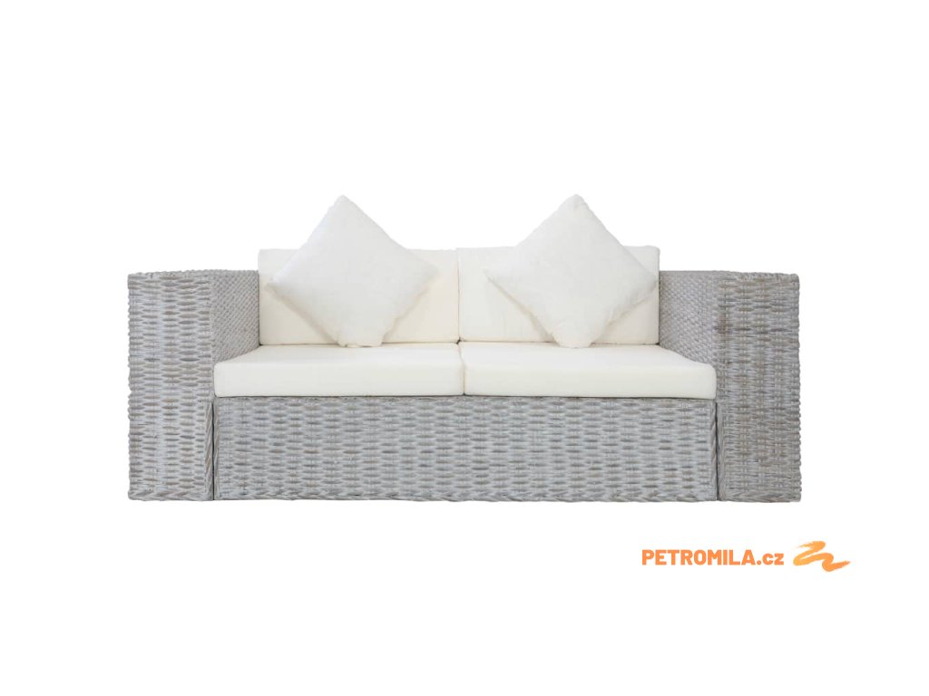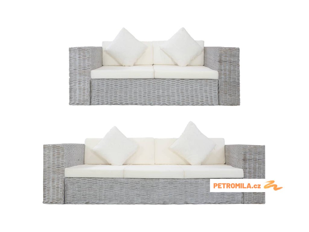 2dílná sedací souprava s poduškami šedá přírodní ratan