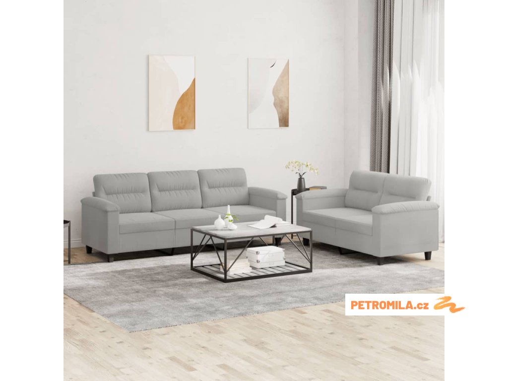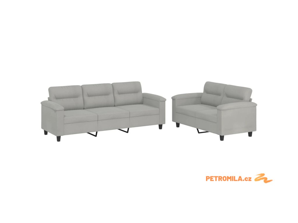 2dílná sedací souprava s poduškami světle šedá mikrovlákno