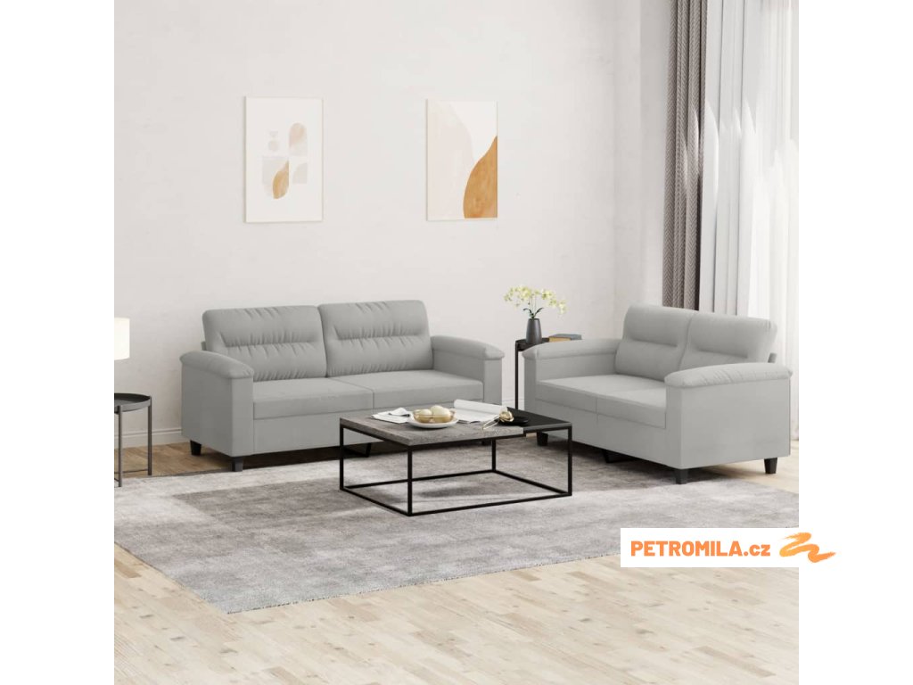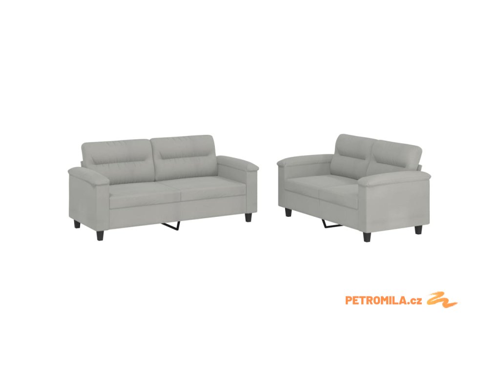 2dílná sedací souprava s poduškami světle šedá mikrovlákno