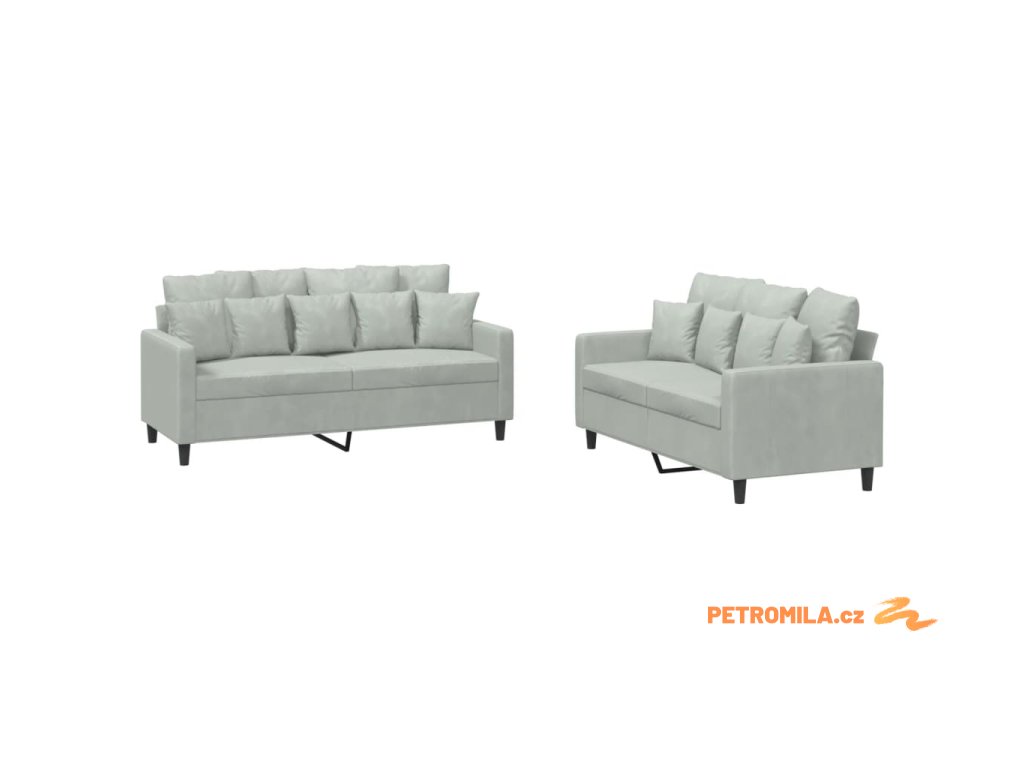 2dílná sedací souprava s poduškami světle šedá samet